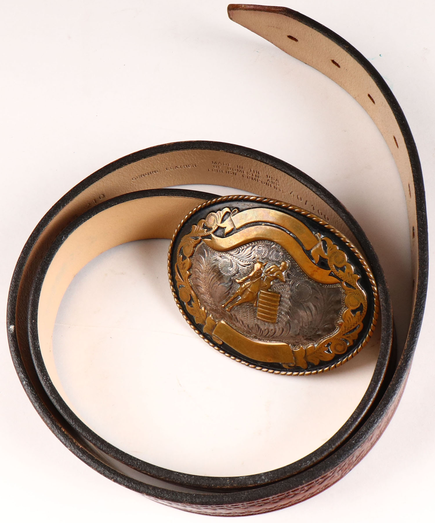 Leather belt with silver belt buckle, 40/100, well made. Grade: Excellent - Value: 20 to 100