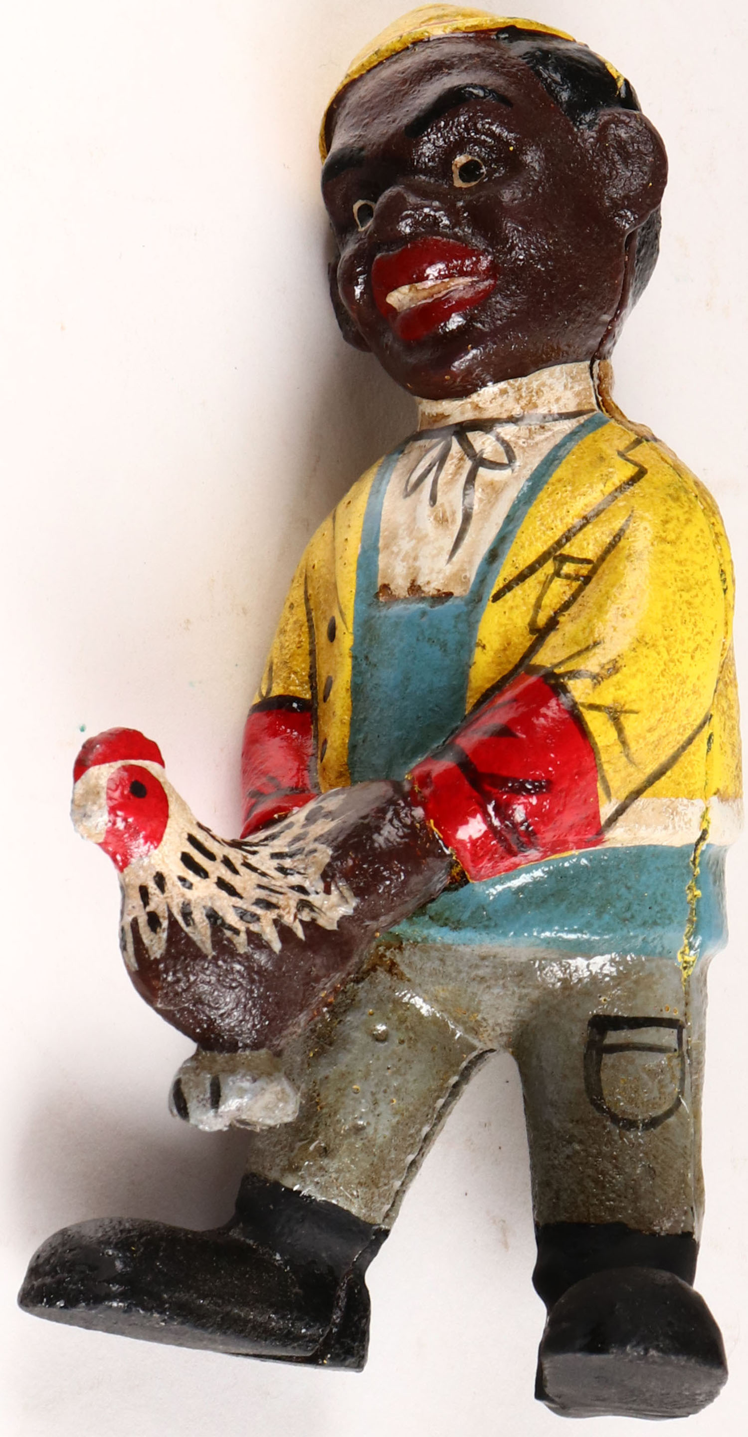 Vintage 5 1/4'' tall cast iron ''Sambo'' holding chicken. Grade: Very Good - Value: 50 to 250