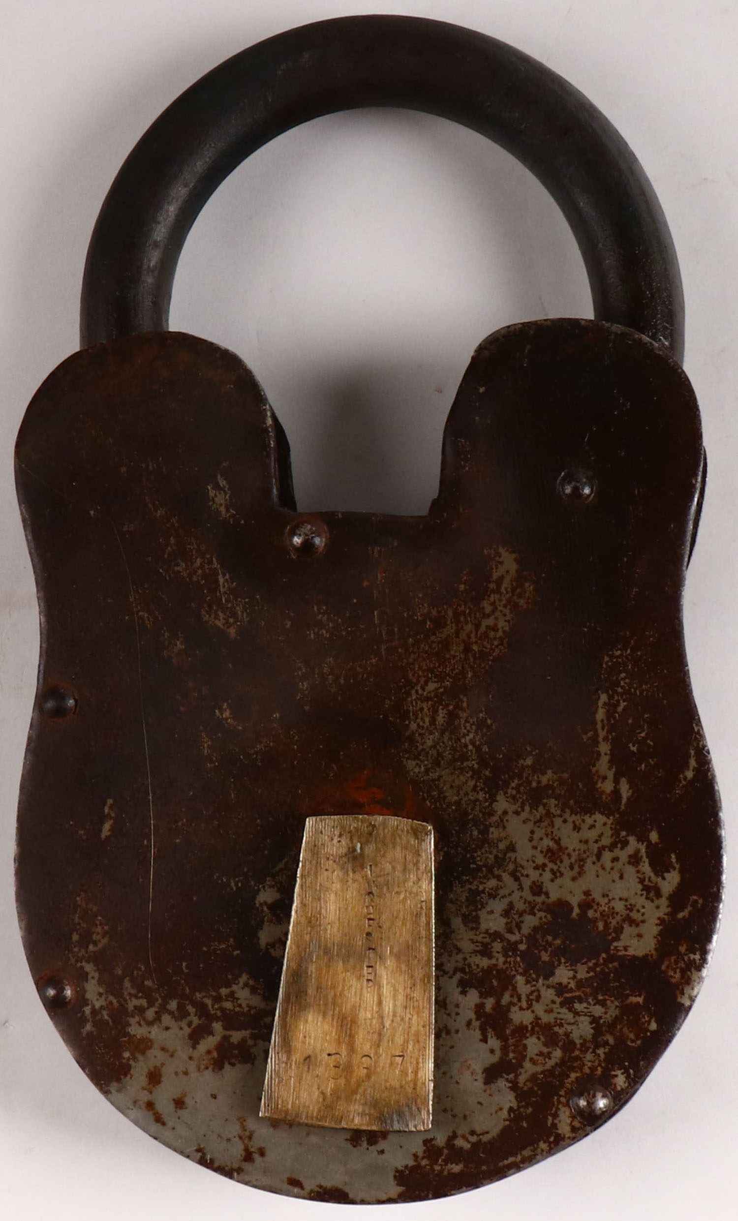 Extremely Large Winchester padlock, marked 1887, no key. Grade: Very Good - Value: 50 to 500
