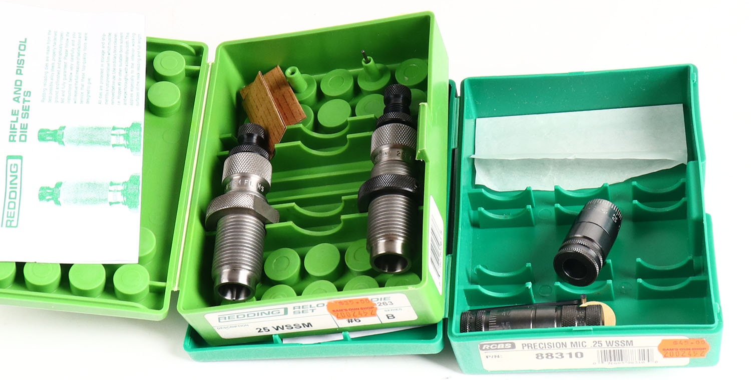 Lot of 2 RCBS reloading dies, .25 WSSM, in original box. Grade: Excellent - Value: 16 to 60
