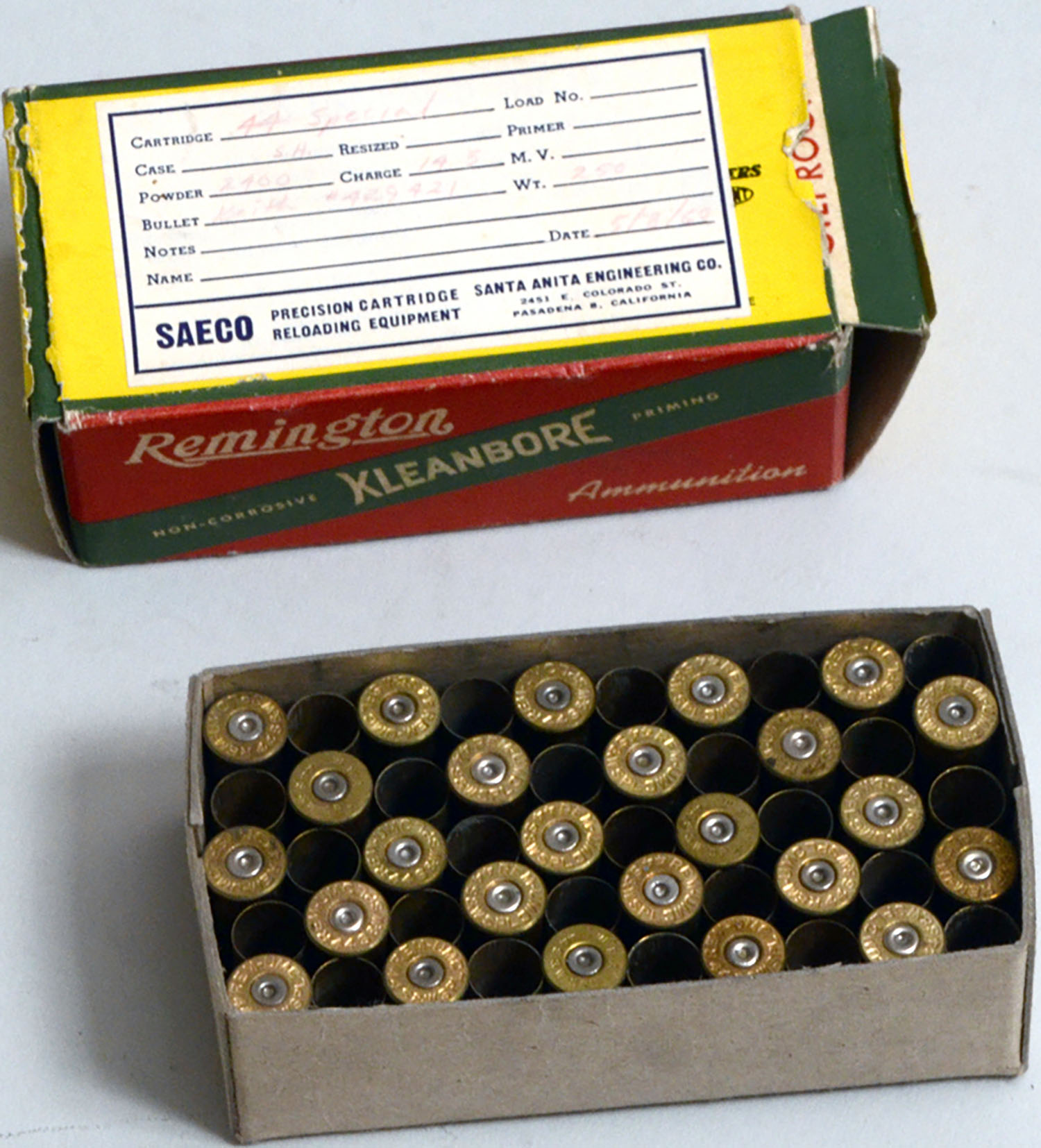 Lot of Bargains, Lot of .44sp Pistol Bargains: (7) 50-round boxes of Elmer Keith hand load: Lyman #429421 cast 250 grain bullet with 17 gr Hercules 1200 powder. (9) 50-round boxes of primed .44sp brass. (2) 50-round boxes of .44sp spent brass, + 2 misc. boxed 44sp items. These items CAN NOT BE RETURNED - Value: 2 to 500