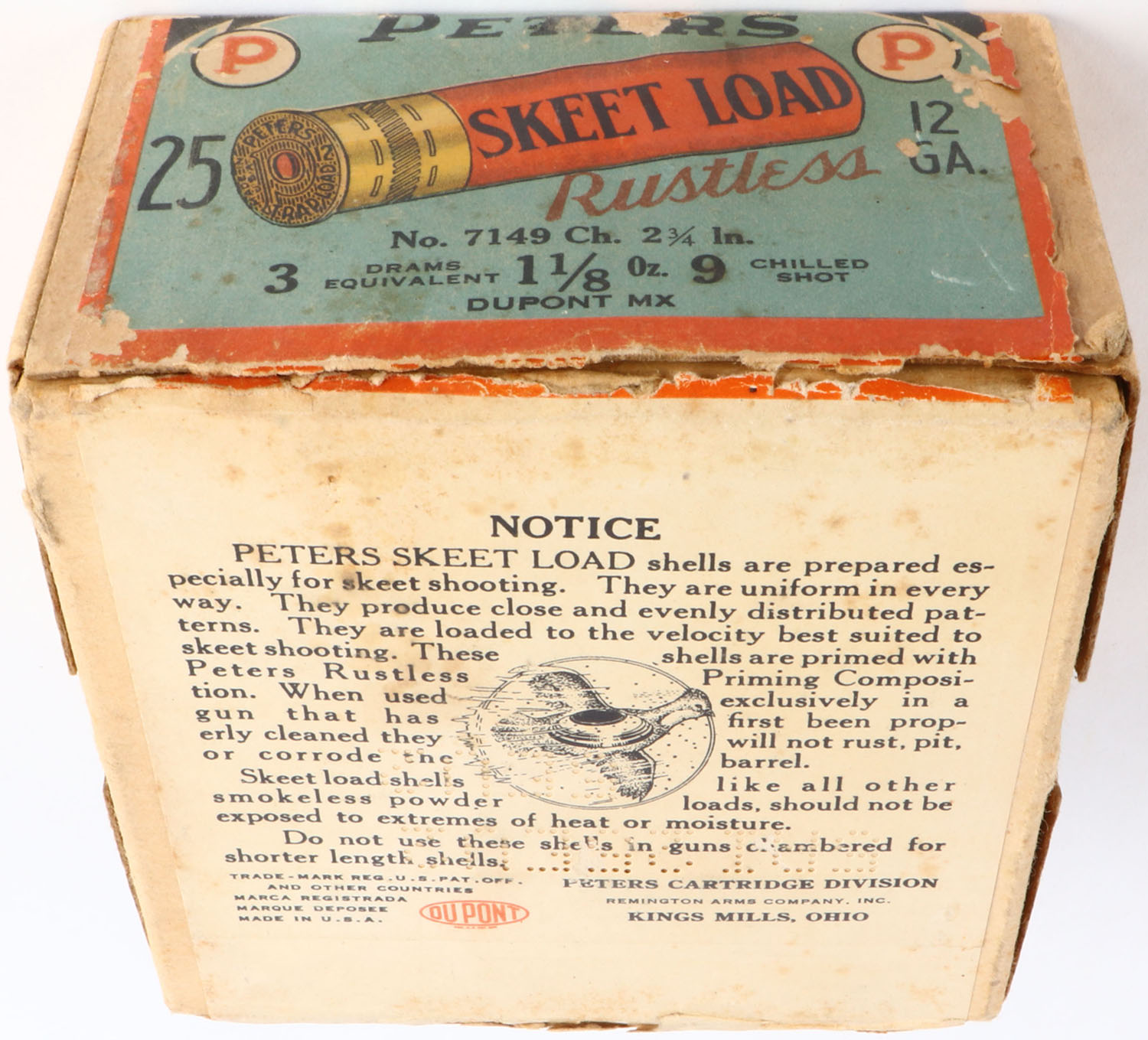 | Peters Cart. Co., SKEET LOAD, 12ga., 2pc., Empty, buff box with ...