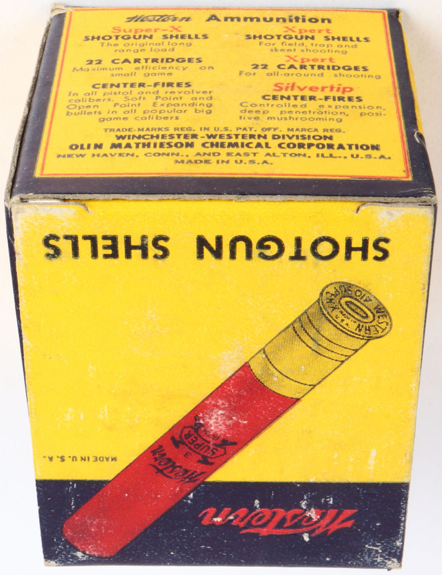 Western, Super X with insert, 410ga., 3'', 1pc., Full, shot size 6, multi-colored box, box is very solid with great colors, shells are excellent. Grade: Excellent + - Value: 10 to 30