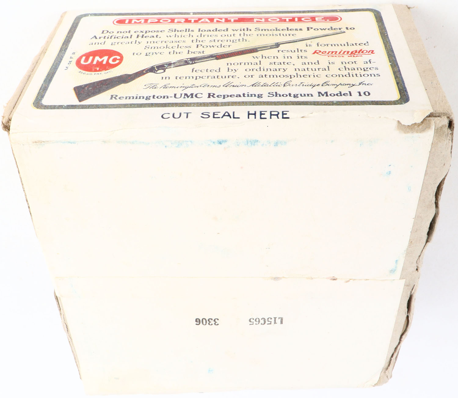 REM UMC, Nitro Club, 12ga., 2pc., FULL and Half SEALED, shot size 1 Buck, buff box with sunburst logo & Mallard flying on top, box has great colors with seam splits. Grade: Excellent - Value: 100 to 300