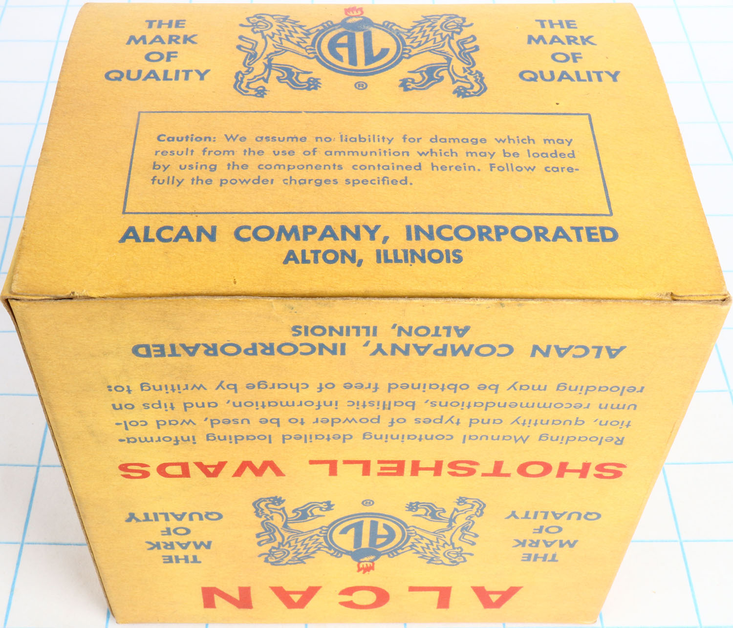 Alcan Shotshell Wads, 20ga., 1pc., Full, box is solid, Wads are excellent. Grade: Excellent - Value: 20 to 100