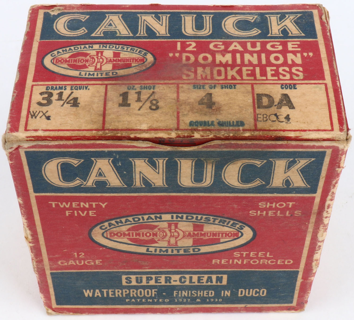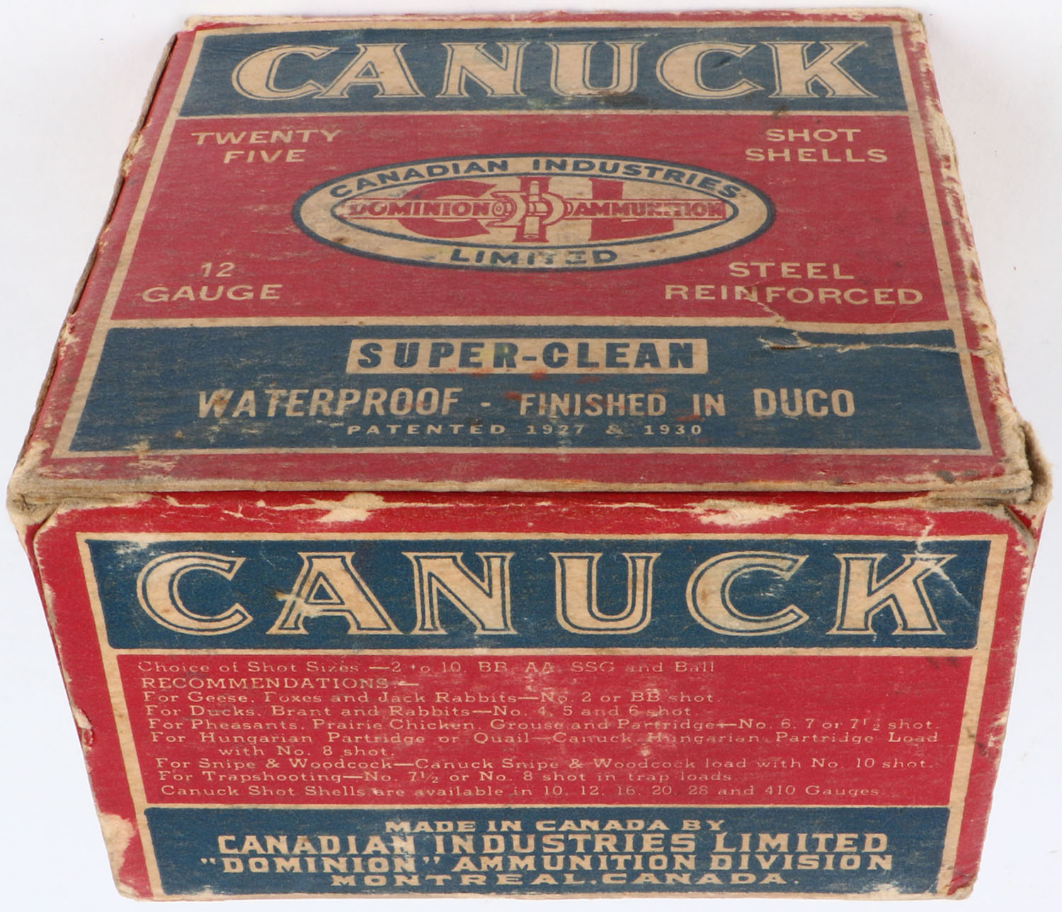 CIL, Canuck, 12ga., 1pc., Full, shot size 4, multi-colored box, box is solid with nice colors, Shells are excellent. Grade: Very Good ++ - Value: 10 to 30
