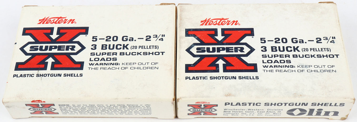 Lot of 2 Western, 20ga., 1pc., Appears Full, shot size 3 Buck, multi-colored box. Grade: Excellent - Value: 10 to 30