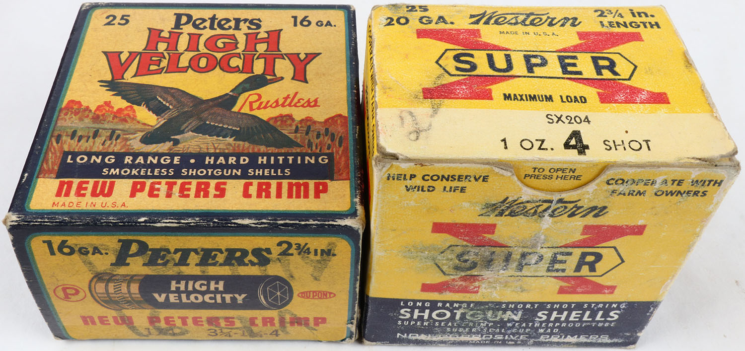 Lot of 2 Peters/Western, 16ga. & 20ga, 1pc., Appears Full, shot size 4, multi-colored box. Grade: Excellent - Value: 10 to 30
