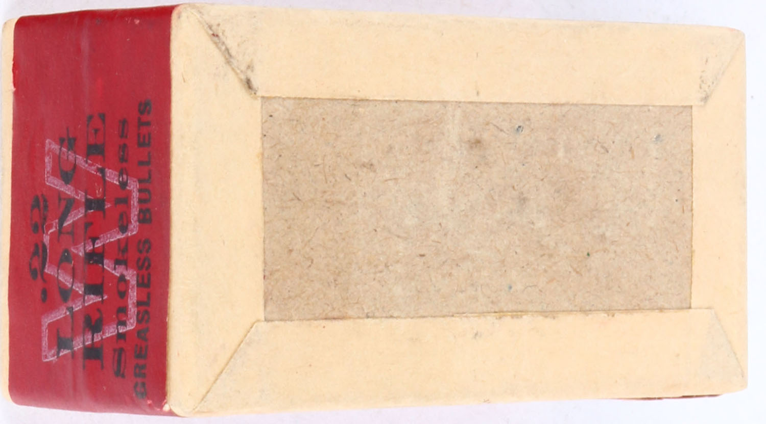 Winchester, Smokeless Rifle Cartridges, .22 Long Rifle, RR: WRA-117 LR-18a, FULL & SEALED, 2pc. Buff box with red top & side sealing labels, box is MINT with minty color, corners are sharp, edges are crisp, lables are intact. Grade: MINT - Value: 200 to 600