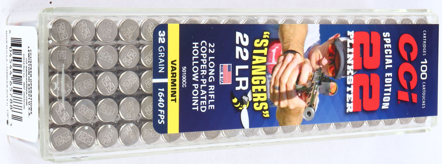 CCi, 22 Plinkster Special Edition ''Stangers'', .22 Long Rifle Stinger, FULL & SEALED, 2pc. Clear plastic tray with multi-colored sealing label, box and label are MINT with mint color, ammo appears mint. Grade: MINT - Value: 10 to 50