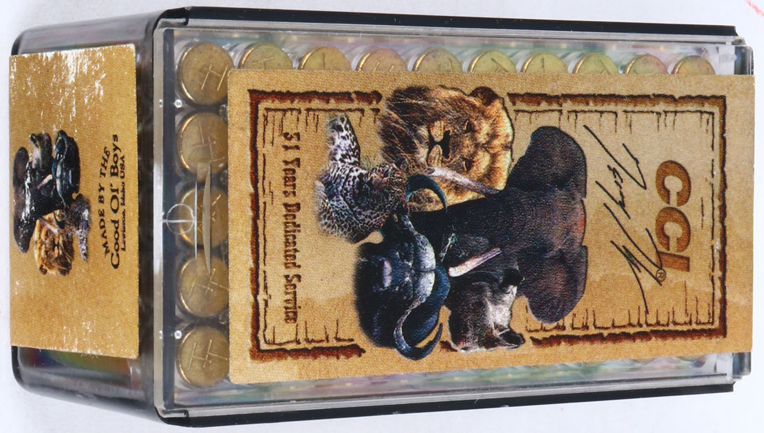 CCi, .22 Mag. ''TNT'' Hollow Point, Terry T. Commemorative box, FULL & SEALED 2pc. Smoky plastic tray with brown label featuring African trophy animals, box is near mint with minty color, only very minor shelf wear. Grade: Excellent ++ - Value: 100 to 300
