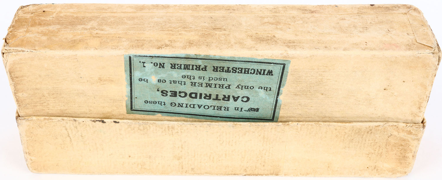 Winchester, .40-60-210 Winchester Repeating Rifle, 2pc., Full, buff box with green, orange & black label, box is solid with excellent color, corner wear, very minor edge wear, ammo is excellent. Grade: Excellent - Value: 200 to 400