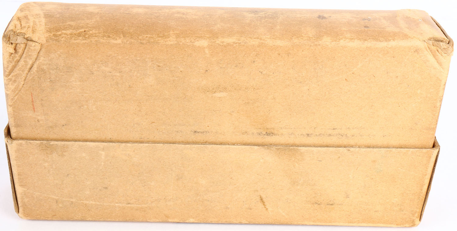 Winchester, .25-36 Marlin, Smokeless, 117 Grain Soft Point Bullets, Full, 2pc. Buff box with orange labels, box is solid with excellent color, minor age soiling, very minor edge & corner wear, corner ding on bottom left corner, labels are intact, ammo is excellent. Grade: Excellent + - Value: 200 to 400