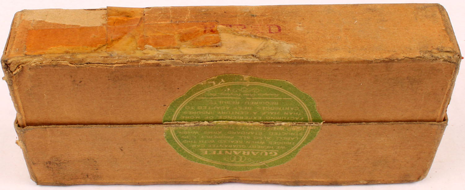 REM-UMC, .45-85 Marlin, 285 Grain Bullet, Full (U.M.C. S H H/S), 2pc. Buff box with red labels, box is solid with excellent color, some shelf & corner wear, some edge wear, labels are intact, tape on bottom, ammo is excellent. Grade: Excellent - Value: 400 to 1200