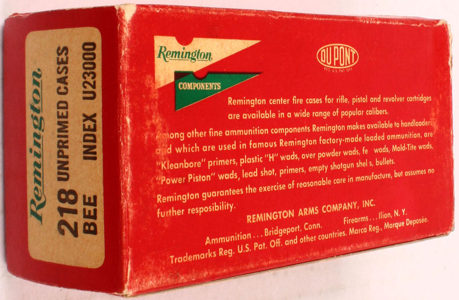 Remington, .218 Bee, Unprimed cases, 1pc, Full, red/white box with white/green print, box is solid with rub marks, & handling wear, shells are excellent. Grade: Excellent - Value: 20 to 60