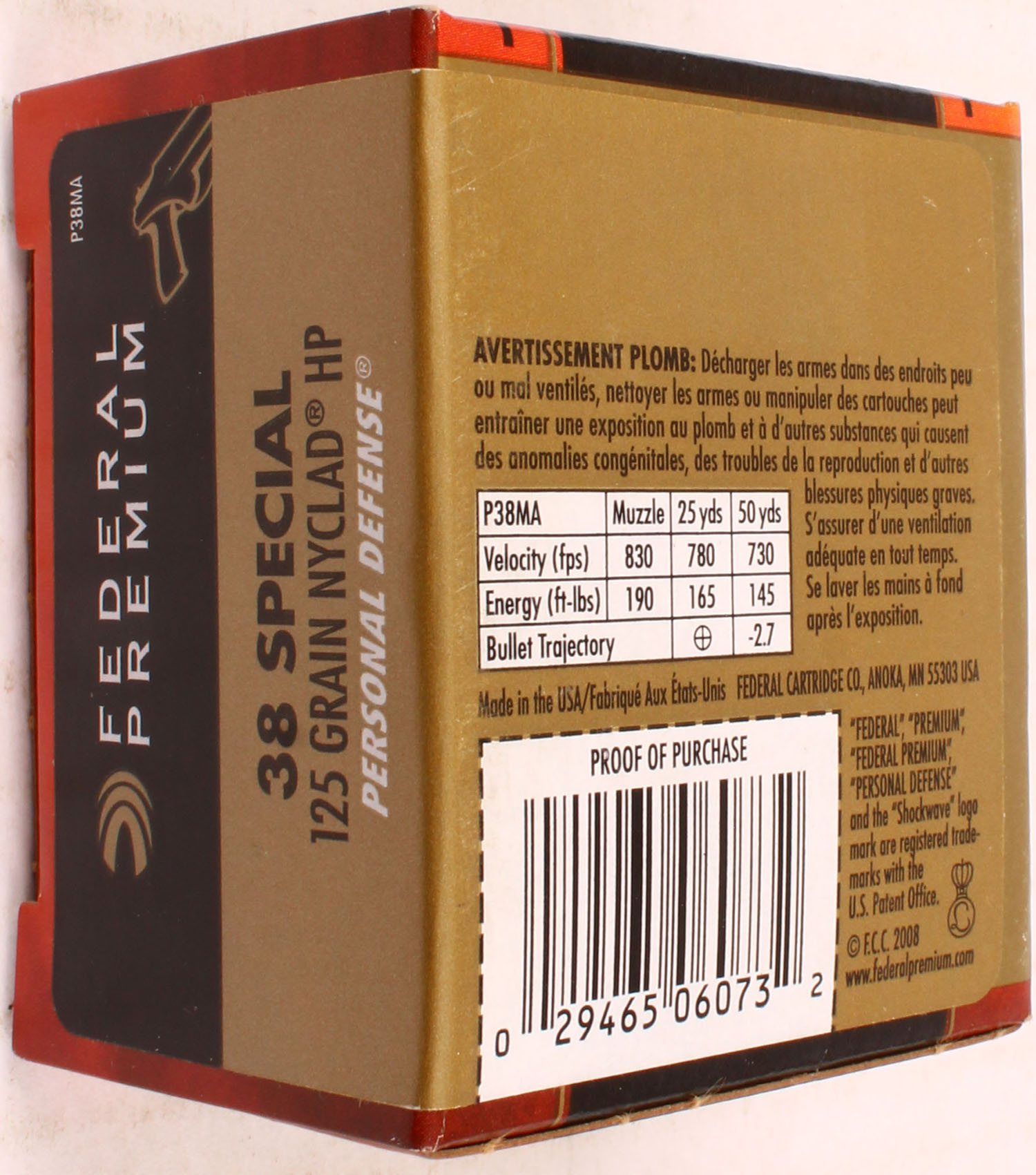 | Federal Premium, Personal-Defense, 38 Special, 125 Grain Nyclad ...