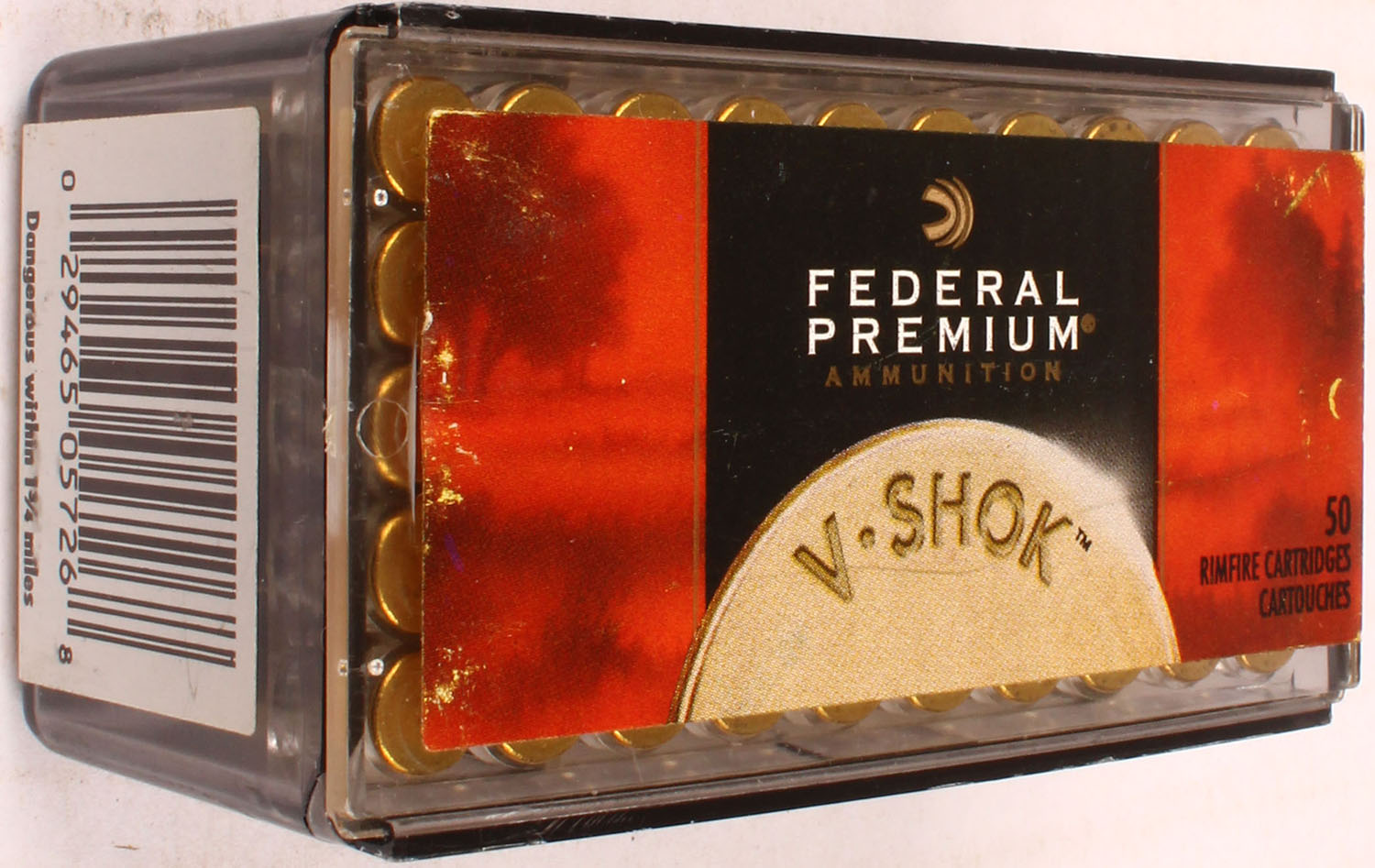 Federal Premium, V-Shok, 17 HMR, 17 Grain Speer TNT HP, FULL & SEALED, 1pc. multi-colored box, box is solid with excellent color, Ammo is excellent. Grade: Excellent + - Value: 20 to 60