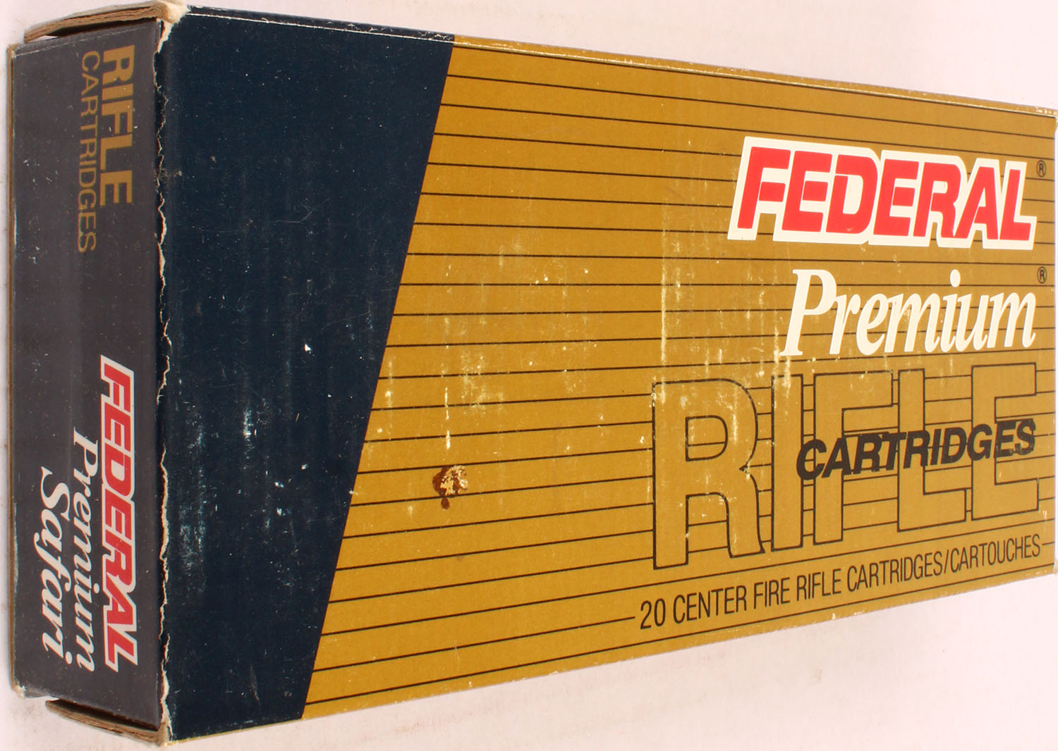 Federal Premium Safari, 416 Rigby, 400 Grain Trophy Bonded Solid, Full, 1pc. multi-colored box, box is solid with excellent color, Ammo is excellent. Grade: Excellent - Value: 20 to 80