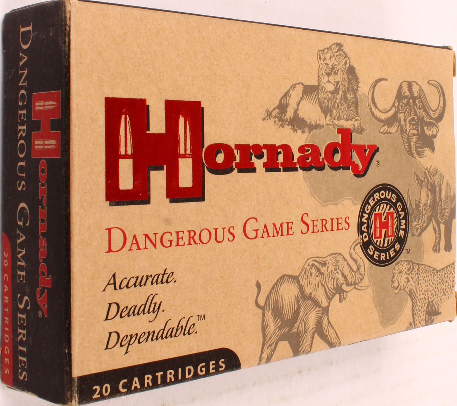 Hornady, Dangerous Game Series, 375 H&H, 270 Grain SP-RP, Full, 1pc. multi-colored box, box is solid with excellent color, Ammo is excellent. Grade: Excellent ++ - Value: 20 to 60