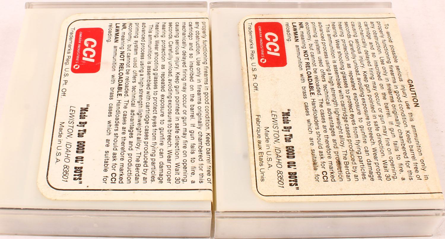 Lot of 2 CCI, 38 SPL/357 Mag, FULL & SEALED, 1pc. multi-colored box, box is solid with excellent color, Ammo is excellent. Grade: Excellent - Value: 10 to 40