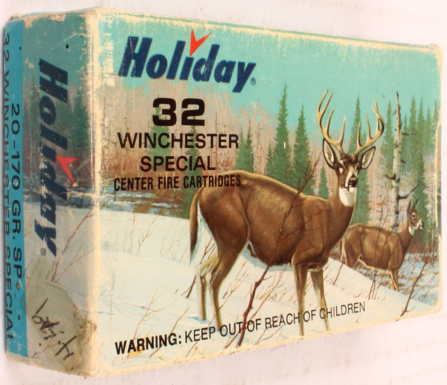 Holiday, 32 Winchester Special, 170 Grain Soft Point, Full, 1pc., multi-colored box, box is solid, light edge wear, Ammo is excellent. Grade: Excellent - Value: 20 to 80
