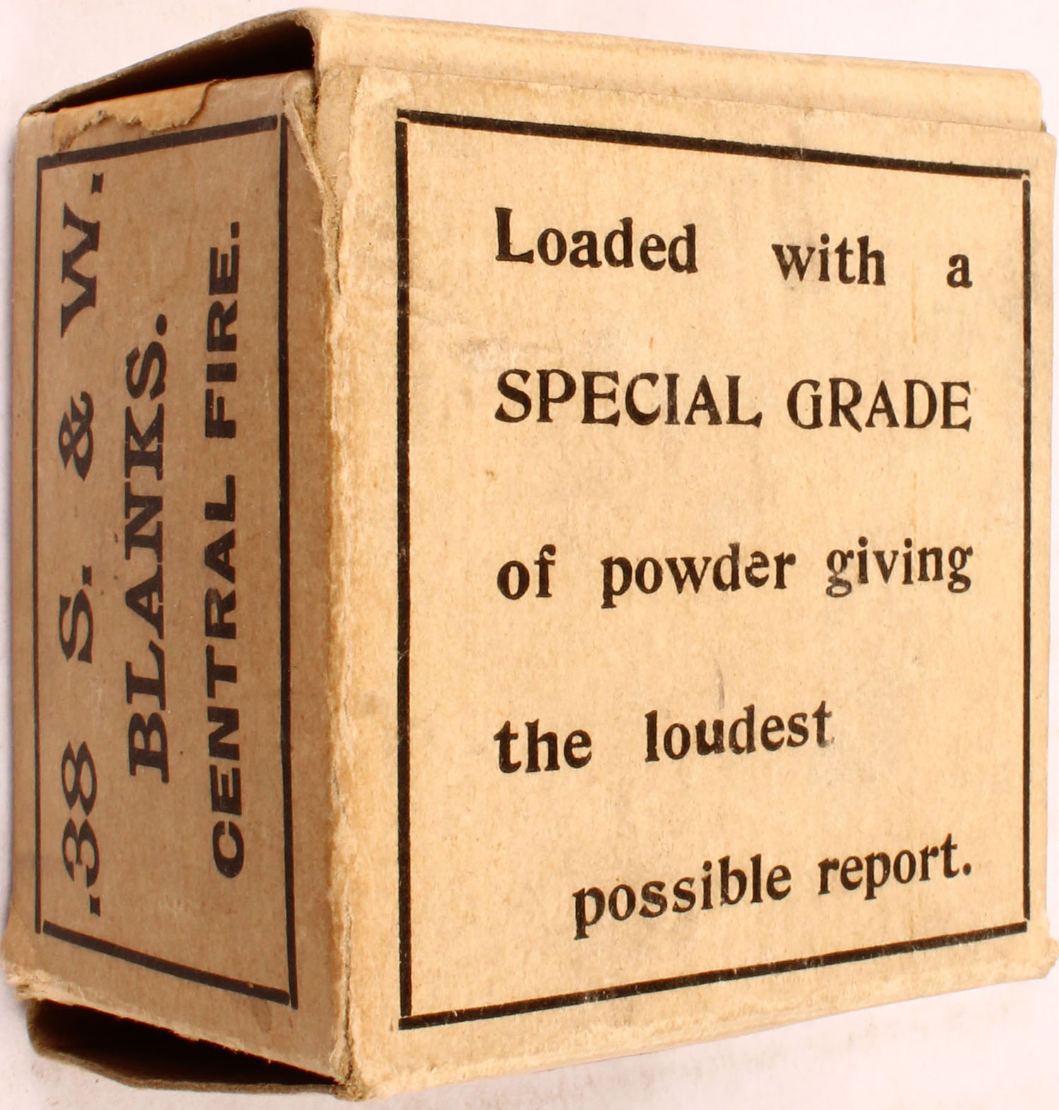 Union Cap & Chemical Co., .38 S&W Blanks, 1pc, Full, buff box with black print, box is solid with light wear, ammo is very good. Grade: Excellent ++ - Value: 10 to 30