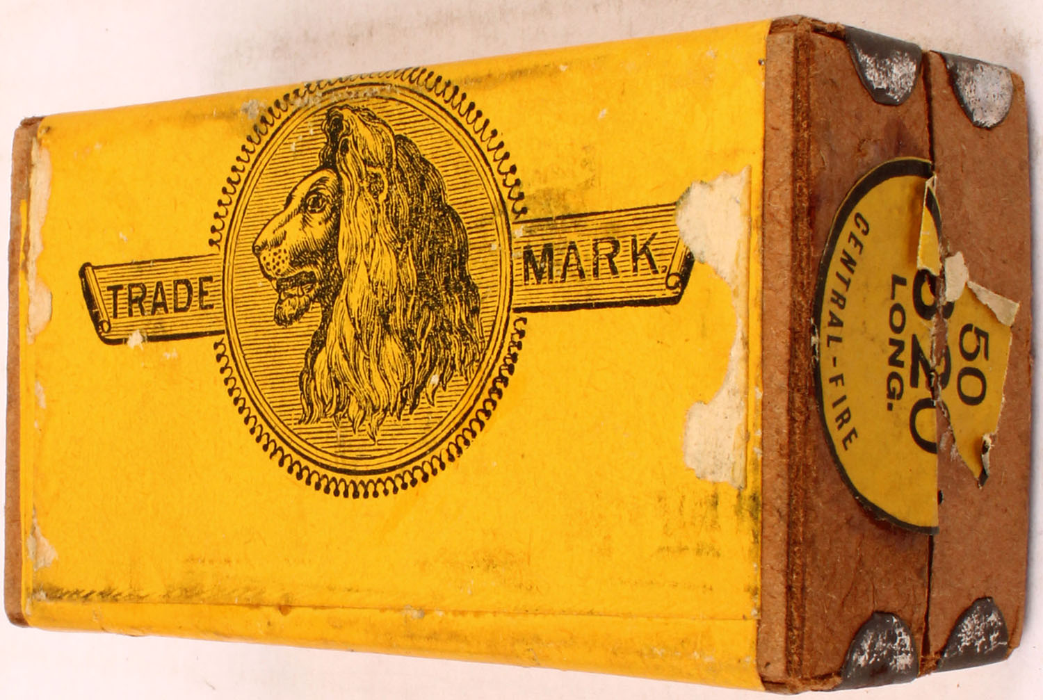 Kynoch Limited, .320 Rook, 80 Gr. Bullet, 2pc, Full, buff box with yellow label & black print, box is solid with light rub marks & light age soiling, ammo is very good. Grade: Excellent - Value: 50 to 100