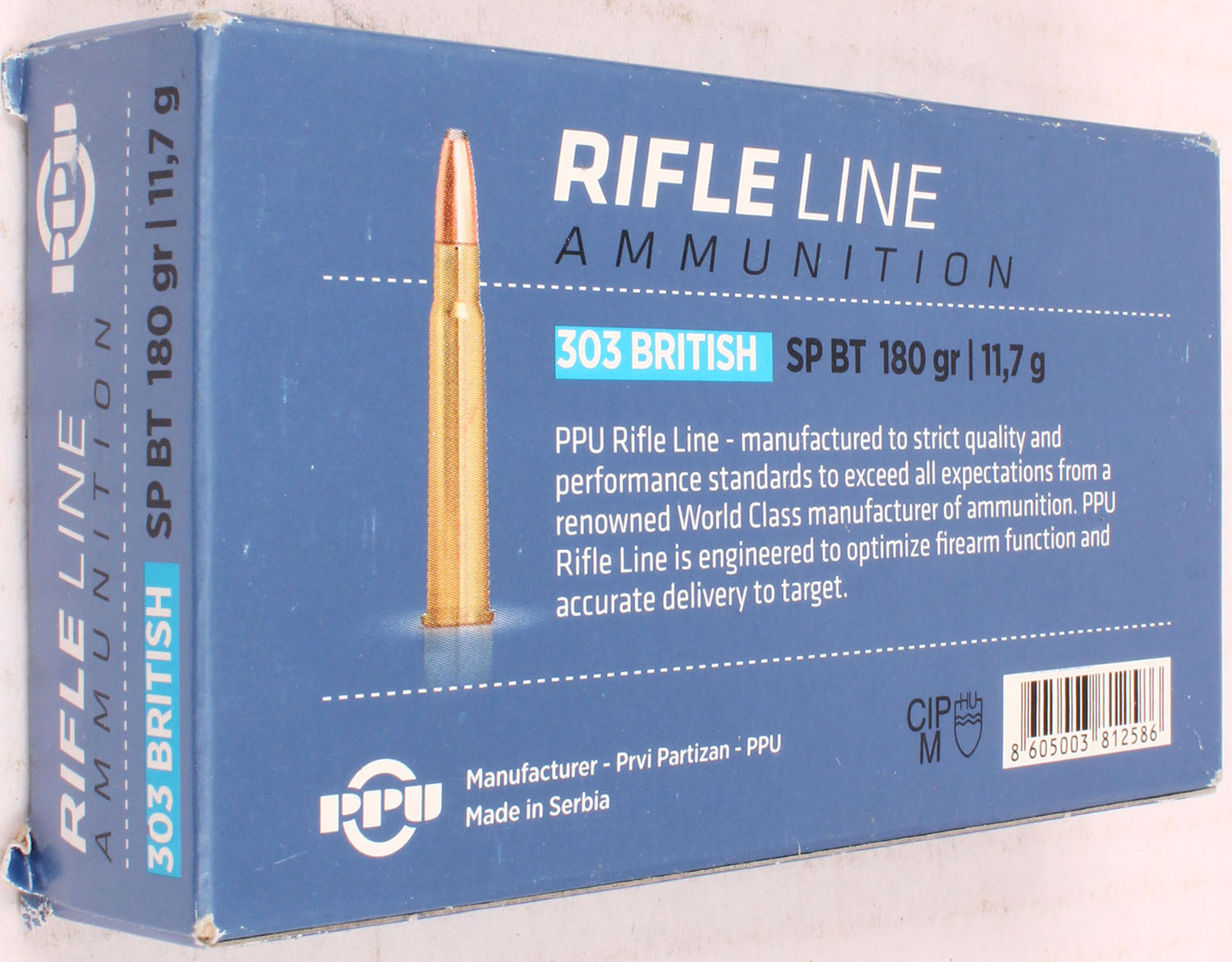 | PPU, 303 British, 180 Grain SP BT, Full, 1pc. Multi-colored box,...