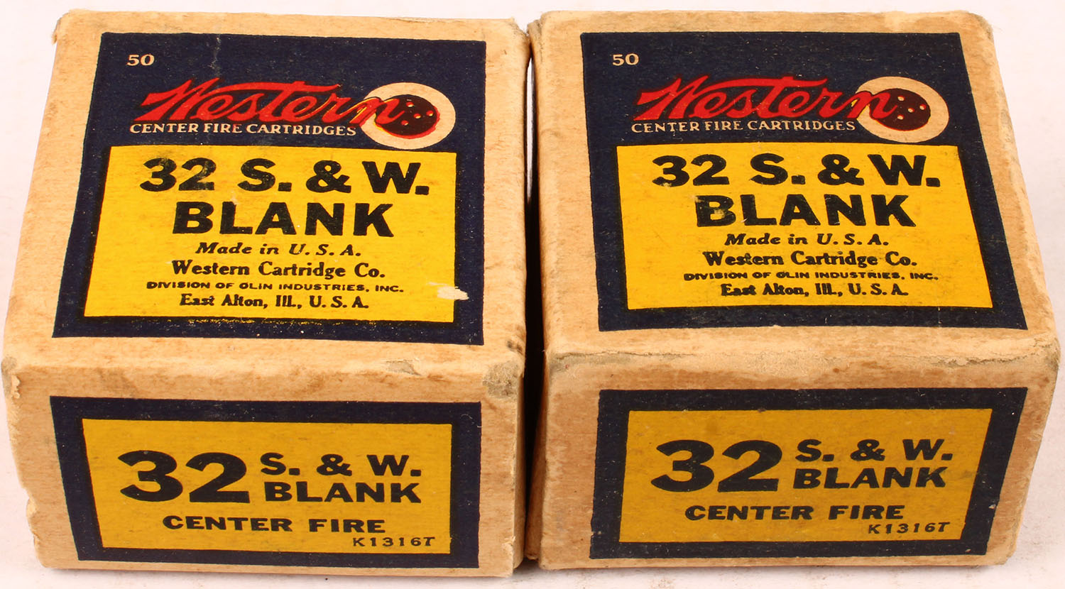 Western, Lot of (2) .32 Smith & Wesson Blanks, both boxes are full, boxes are solid with very good color, ammo is excellent. Grade: Very Good - Value: 10 to 50