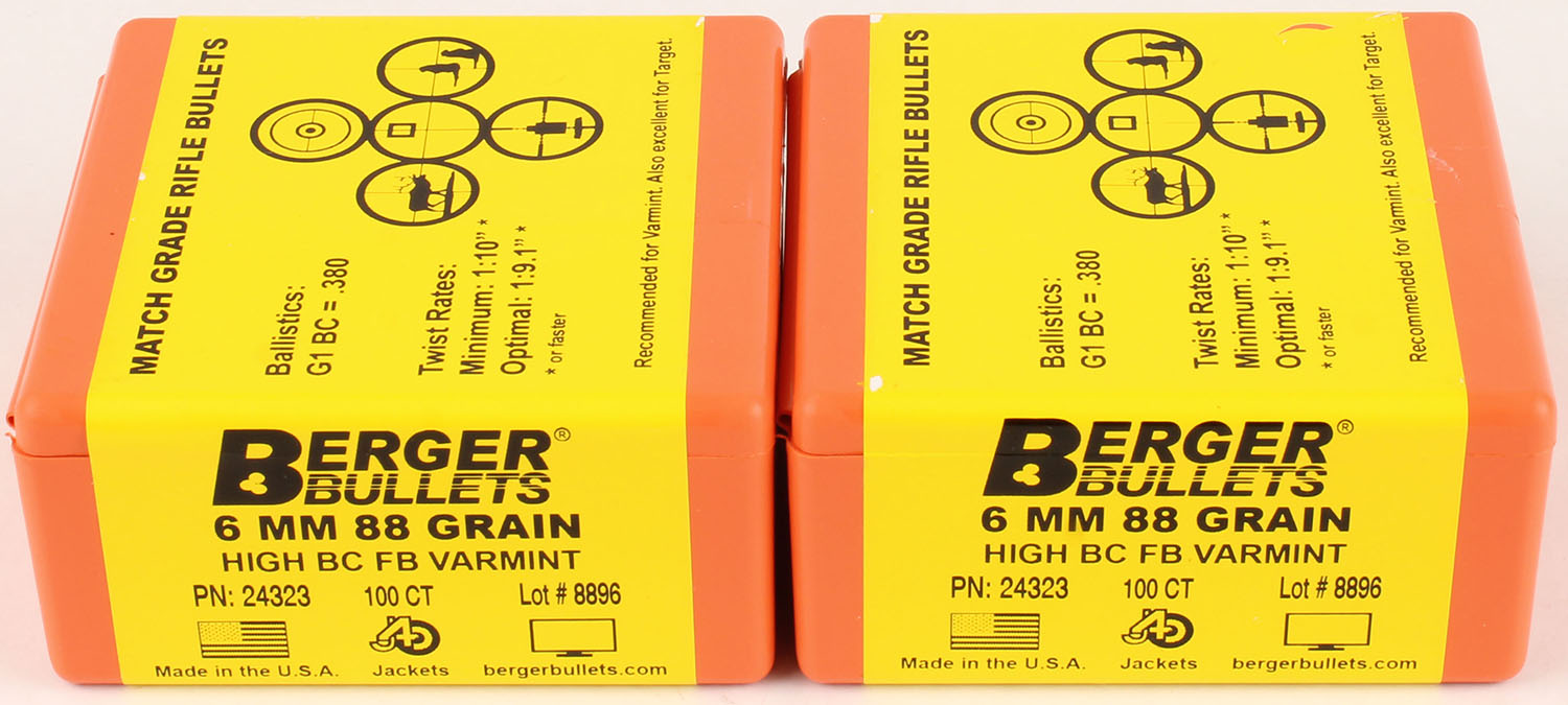 | Lot of 2 Berger, Match Grade Rifle Bullets, 6mm, 88 GR. High BC ...