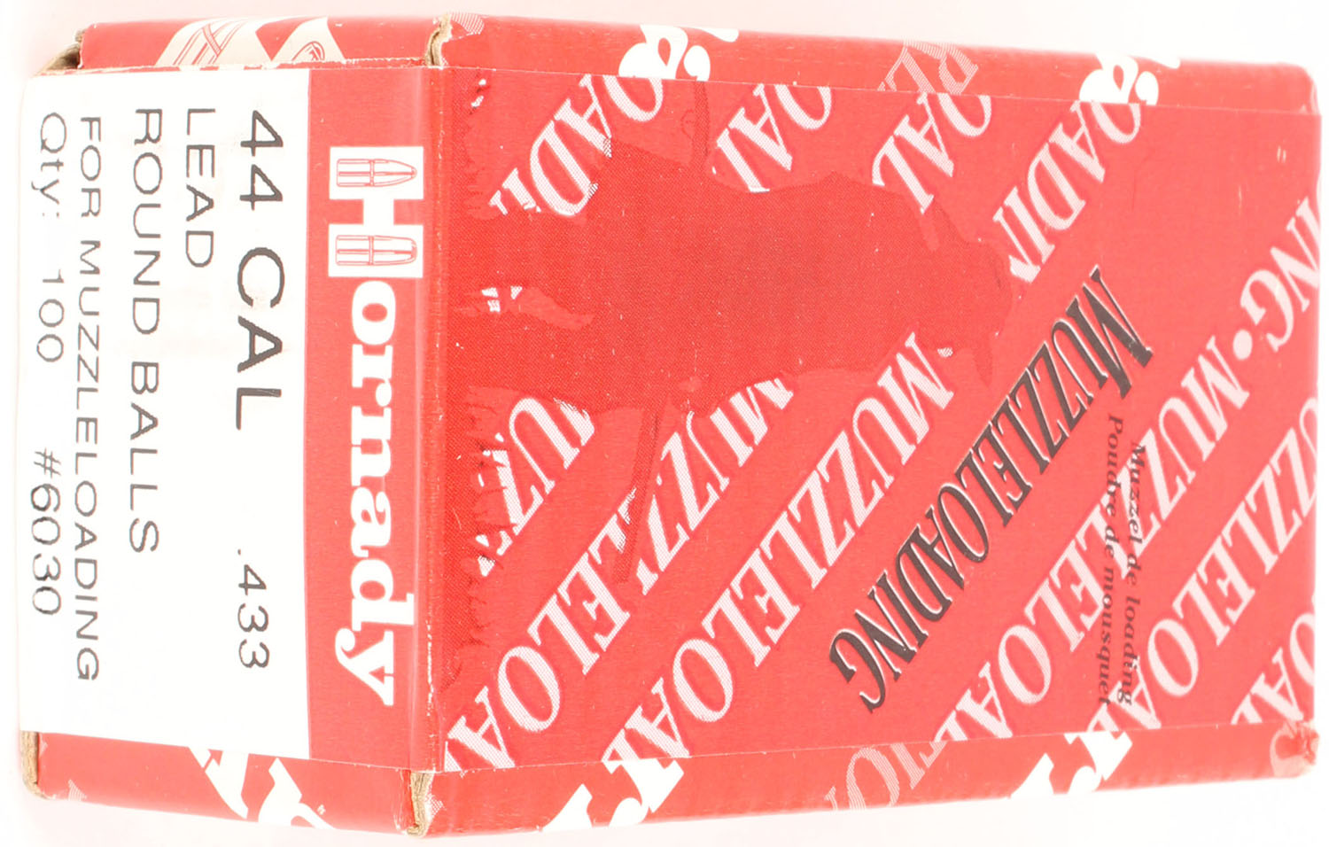 Hornady, 44 Cal., Lead Round Balls, Full, 1pc., Multi-colored box, box is MINT with minty color. Grade: Excellent ++ - Value: 10 to 60