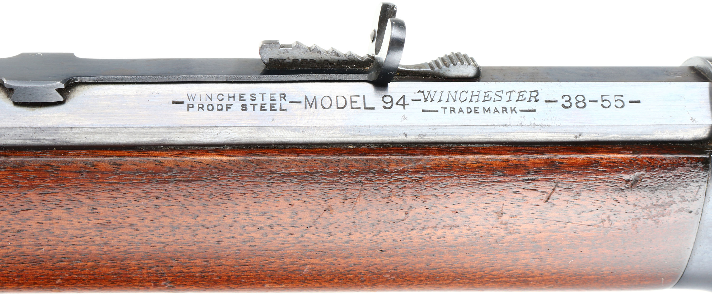 Winchester, Model 1894, CAL: 38-55, MFG: 1904, SN: 225021, Lever Action Rifle, 26'' Octagon Barrel, Full mag. The original wood stocks are excellent, with a few light handling marks, scuffs & contusions to the original excellent finish. There is a larger 1'' contusion on the left side of the stock. The original factory blue is 98% overall, with additional loss on the lever &belly. Bore is excellent, but with a few tiny abrasions amongst strong rifling at muzzle end. Barrel fitted with factory adjustable rear sight & standard front sight. Metal crescent buttplate. Tight smooth action. Comes with a Cody Winchester Factory Records Look-up Sheet confirming configuration & dates. An overall excellent original condition rifle & highly collectible.* FFL or C&R Req. - Value: 3000 to 5000