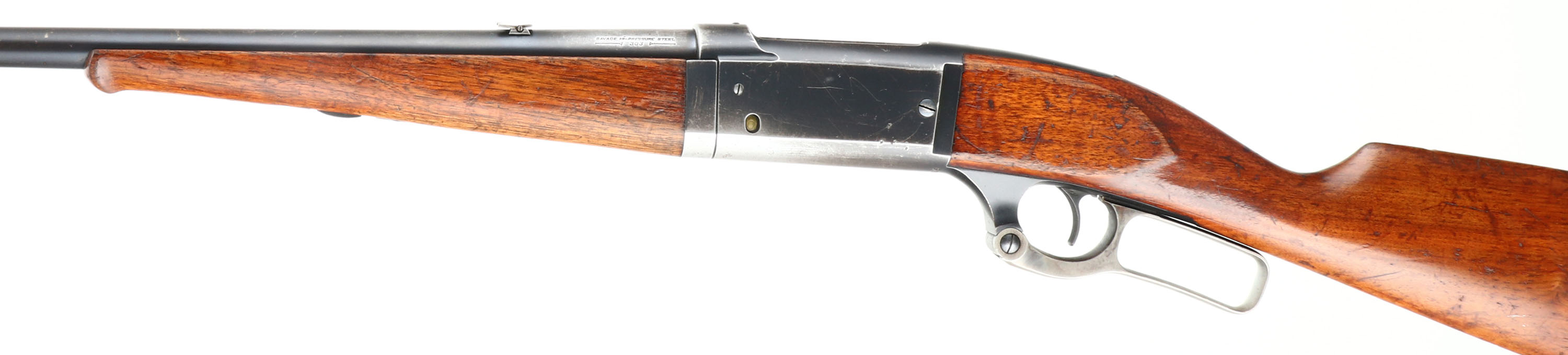 Savage, Model 1899, Take-down, marked 303 Cal., MFG: 1921, SN: 234609, Lever Action Rifle, 26'' Tapered round barrel. The factory straight grip wood stock & schnabel forend are very good & solid, with numerous small handling marks, scratches & contusions to the original finish. There is a small chip at the toe. The original blue finish rates 75% on the barrel, 60% on receiver, with most wear found on the belly. The lever displays faint remains of case-coloring. The stock carries the original Savage serrated metal buttplate. Barrel fitted with a two leaf folding rear & tall blade front sights. Bore is very good. Top of receiver carries 4 filler screws from previous scope mounting. Action is smooth & tight. Nice overall appearance. FFL or C&R Req. - Value: 600 to 1200