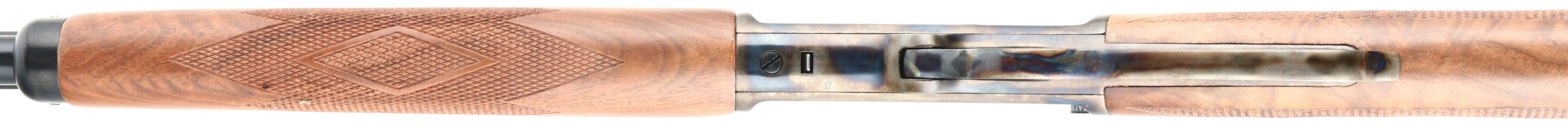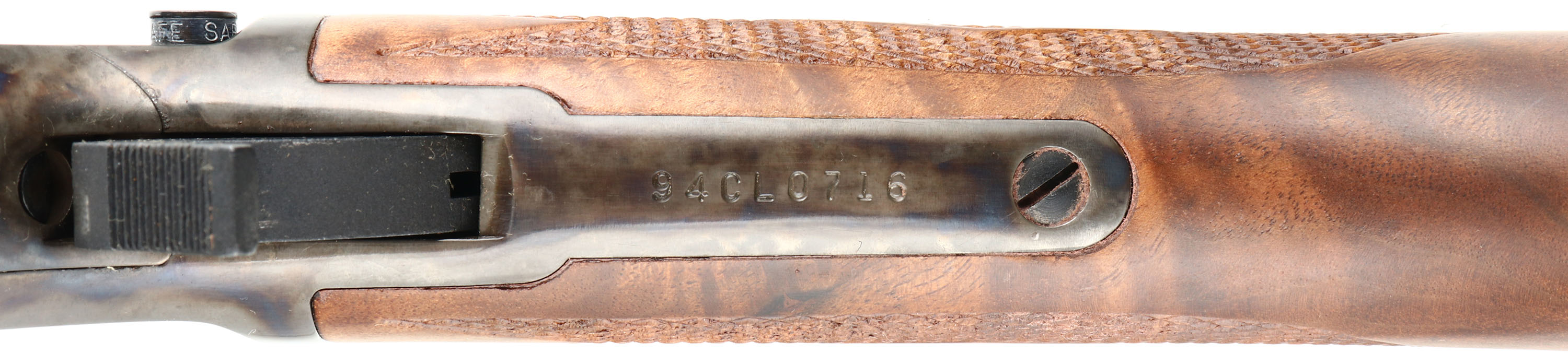 NEW BOXED, Marlin, 1894 Century Limited, 100 Year Anniversary (1894CNLTD). CAL: .44-40, MFG: 1994, SN: 94CL0716, Lever Action Rifle, 24'' Octagon barrel. Full Mag. Both sides of the case-hardened receiver & lever feature foliate engraving. The left side of the receiver has ''Century Limited 1894-1994'', an engraved buck, & signature of engraver ''Bottega C. Giovanelli'' at the bottom. The right side has the Marlin horse back rider engraved. The upper tang is marked with the serial number. The top of the receiver has foliate engraving & is marked ''MARLIN SAFETY''. The stocks are two-piece checkered walnut with an oiled finish, capped forearm, straight grip & comb, & a crescent brass buttplate. The buttstock has the ''Marlin Bullseye'' in the belly. The metal blue finish rates 100% overall. The receiver displays vivid case-colors. Bore is mint. Barrel carries factory buckhorn rear & front blade sights. Comes in original matching box, with packaging & paperwork. NOS. A fantastic commemorative rifle. FFL Req. - Value: 1000 to 2000