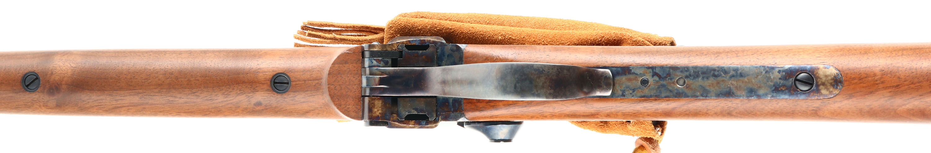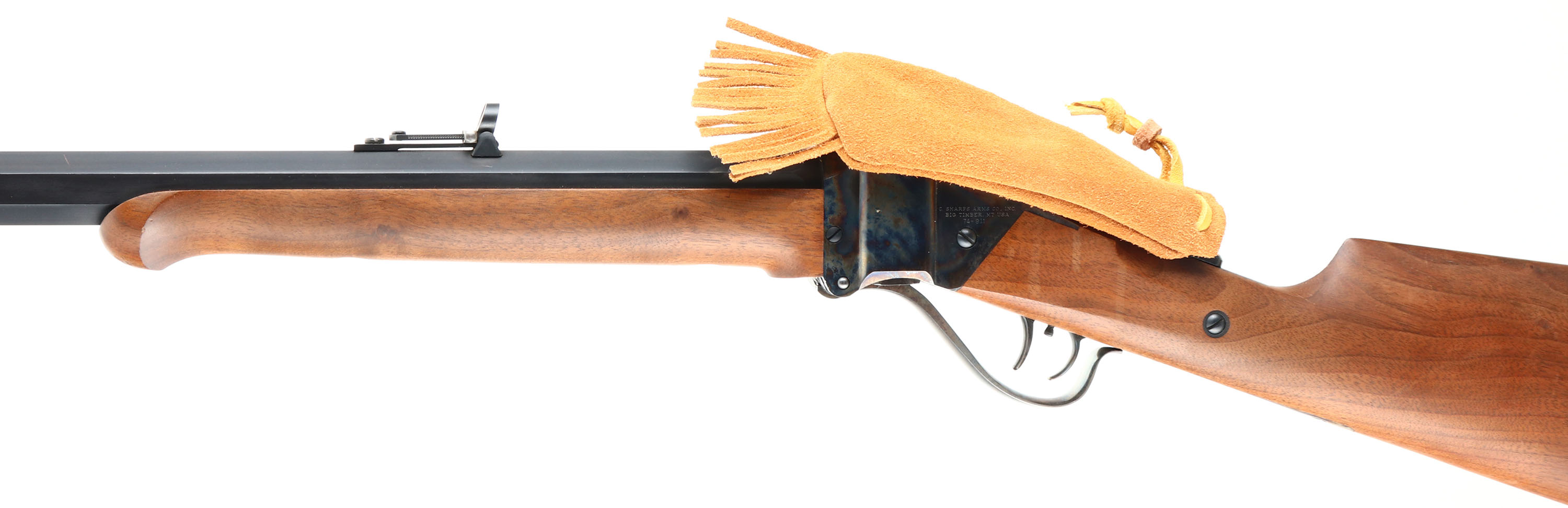 C. Sharps Arms Co, Model 1874, CAL: marked .40 2 1/10, MFG: Modern, SN: 74-911, Lever Action Falling Block Rifle, 30'' Octagon barrel. From C.Sharps Arms Co: ''Arguably the most famous single shot rifle of the American West, the 1874 Sharps falling block rifle story began in 1848 when Christian Sharps patented his first breech-loading rifle & carbine design using paper cartridges ignited by a separate musket cap. Throughout the 1850s & 60s, the Sharps breech-loading rifle became popular with military & civilian users alike. As metallic cartridges were developed & became available the venerable breech-loading Sharps was a perfect candidate for conversion to the metallic cartridges of the time. Many of the Civil War Era Sharps rifles & carbines were converted to early metallic cartridges. The 1874 Model was introduced by the Sharps Rifle Co. as the first purpose-built rifle to house the new breed of powerful metallic cartridges. It quickly showed itself as being a rugged & reliable rifle perfectly suited to the rigors of the frontier. This reputation led to the 1874s nickname & C. Sharps Rifle Co. Inc. trademark of ''Old Reliable''. The C. Sharps Arms Co. Inc. continues the legacy of the original C. Sharps & Co. & Sharps Rifle Co. by building heirloom quality reproductions of the Sharps 1874 rifles like the rifle offered in this lot. The original straight grip wood stocks, with schnabel forend, are excellent. There are minor contusions & handling marks to the original finish. The factory metal blue finish on the barrel rates 99%. The receiver, hammer & lever are case-hardened, retaining vivid case-colors. Bore is excellent. Fitted with a factory long range rear tang sight, while the barrel carries a full buckhorn/sliding ladder rear sight & globe front sight. The front sight can be modified with different reticles. Stock carries a case-colored checkered metal buttplate. This is a fabulous & beautifully made, high quality reproduction of an original 1874 Sharps rifle. FFL Req. - Value: 3000 to 4000