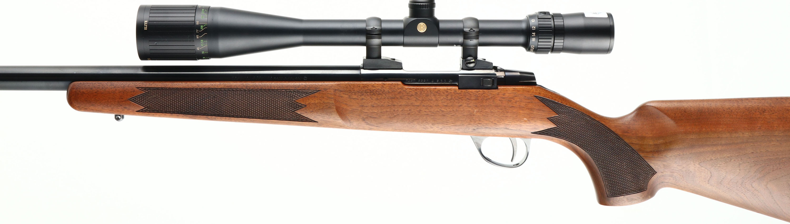 SAKO, Model AI, CAL: 6 PPC USA, MFG: Late 1980's, SN: A533, Bolt/Single Shot Action, 23 1/2'' bull barrel. The original checkered & flat pistol grip Monte Carlo stock is excellent. There are minor handling & storage marks to the original finish. The original metal blue finish rates 98% overall. Bore is minty. The receiver holds a Burris Elite 6-24x40 scope. No open sight provisions. Sling studs. Stock has a SAKO solid recoil pad. A great small caliber bench target or hunting rifle. FFL Req. - Value: 1000 to 1700
