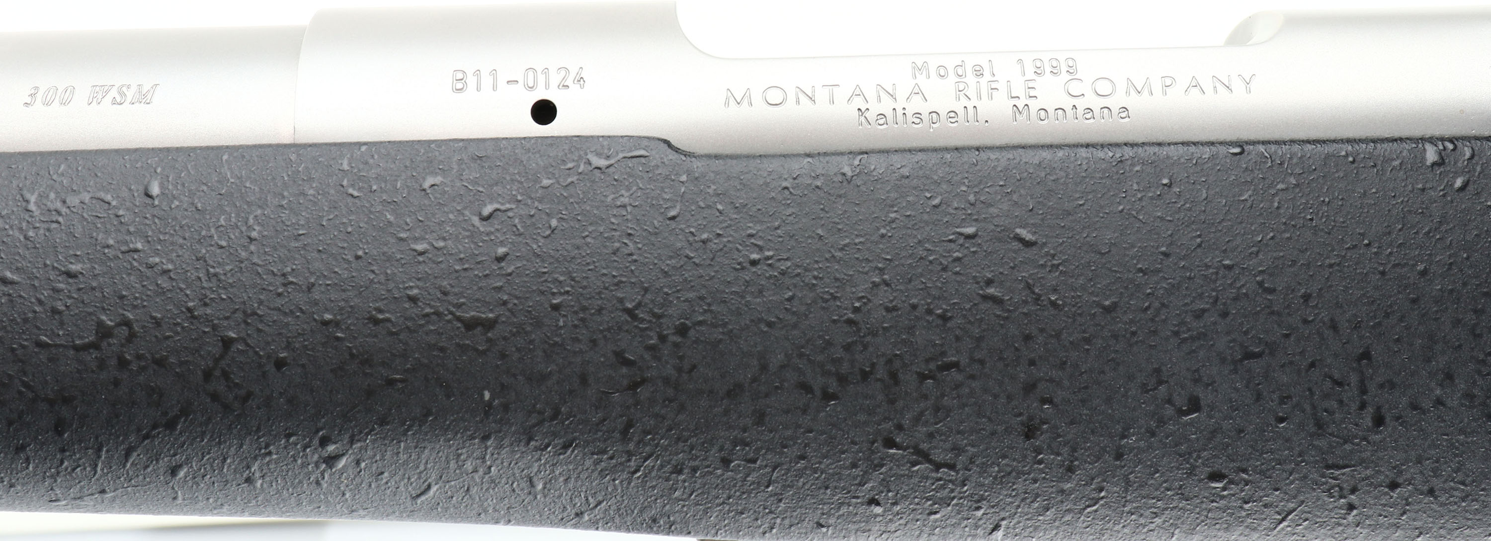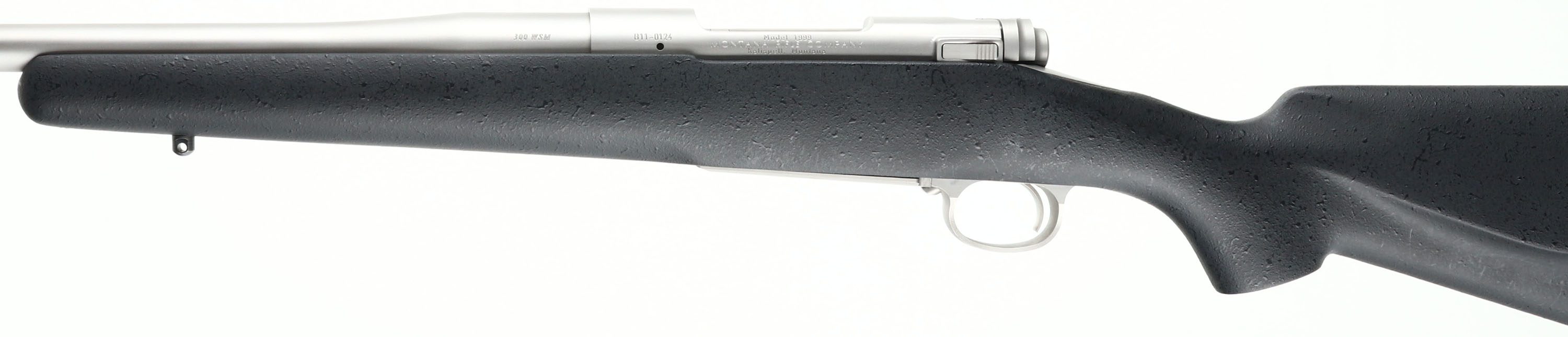 Montana Rifle Company, Model 1999, CAL: 300 WSM, MFG: Modern, SN: B11-0124, Bolt Action Rifle, 24 1/4'' barrel. The textured, flat pistol grip & cheeked synthetic stock is excellent. The black speckled finish is excellent. The stainless steel finish on the barrel & receiver is excellent. Bore is minty. The receiver is factory tapped & drilled, with (4) open screw holes for scope mounting. No open sight provisions. Sling studs. Stock carries a Decelerator solid recoil pad. A top-of-the-line hunting rifle. FFL Req. - Value: 1000 to 2500