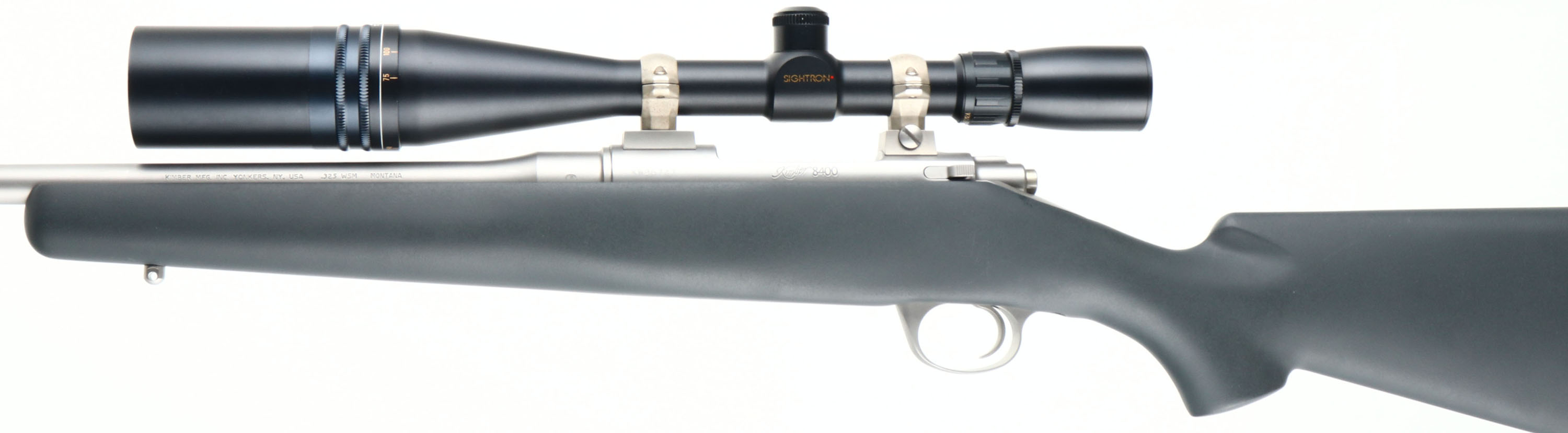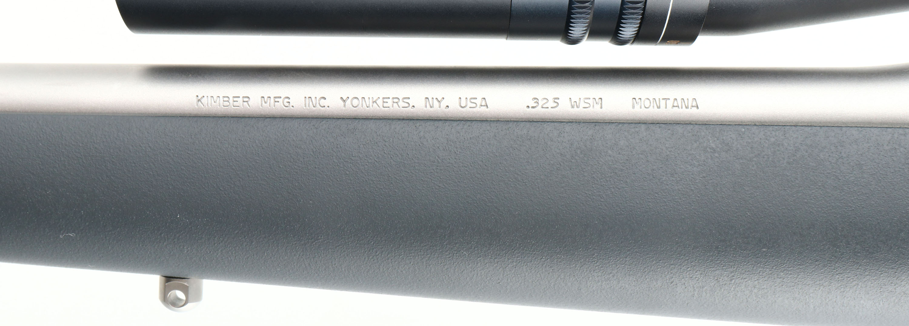 Kimber, Model 8400 Montana, CAL: 325 WSM, MFG: Modern, SN: KW06747, Bolt Action Rifle, 23 3/4'' barrel. The synthetic grey stock is excellent. The satin silver finish on the barrel & receiver is excellent, rating 99%. Bore is excellent. No open sight provisions. The rifle is fitted with a Sightron SII 6-24x42MD scope. Sling studs. Stock carries a Kimber solid recoil pad. Top load internal magazine capable of holding 4 rounds. A high quality modern hunting rifle, ready for the woods. FFL Req. - Value: 900 to 1600