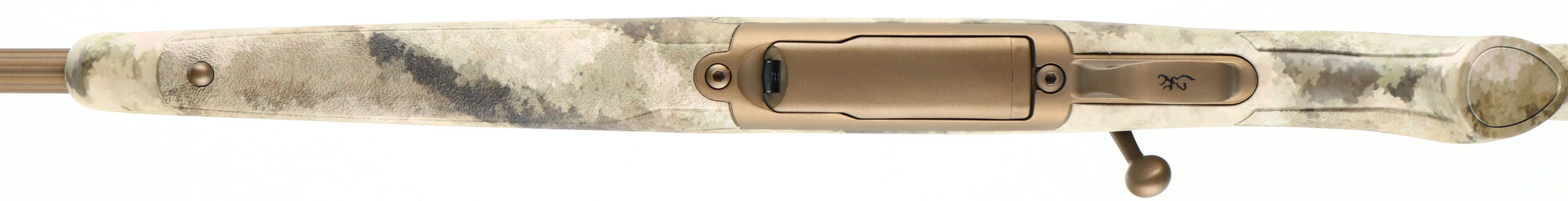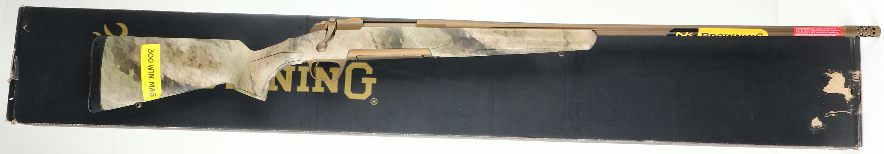 BOXED Browning, X-Bolt Hell's Canyon, CAL: 300 WIN MAG., MFG: Modern, SN: 22060ZN354, Bolt Action Rifle, 26'' Tapered & flouted bronze barrel, with muzzle brake. The original Hells Canyon camo & pistol grip synthetic stock is mint. The original bronze tone metal finish is 100%. Bore is mint. The top of the receiver is factory drilled for a scope mount, No provision for open sights. Sling studs. Factory solid recoil pad. Comes in original label matching box, with owner's manual, lock & instruction manual. A fabulous sporting rifle in NIB condition. FFL Req. - Value: 1000 to 2000