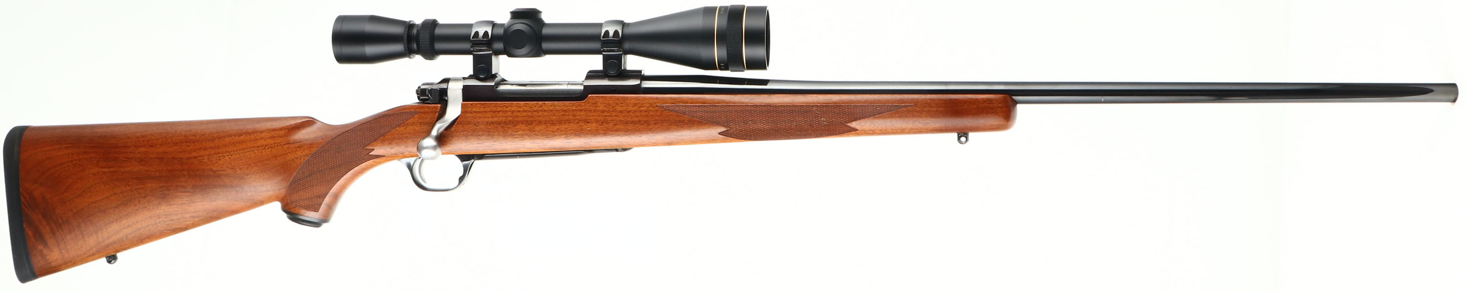 Ruger, M77 Mark II, CAL: 220 SWIFT, MFG: Modern, SN: 788-02947, Bolt Action Rifle, 24'' barrel. The original checkered & capped pistol grip wood stock is excellent. There are only a couple minor storage or handling marks to the original finish. The metal blue finish rates 99% overall. The receiver is beginning to tone plum. Bore is near mint. The receiver carries a Leupold VX-II 6-18 scope. No open sight provisions. Sling studs. Stock has factory Ruger solid recoil pad. The perfect varmint hunting rifle. FFL Req. - Value: 1000 to 2000