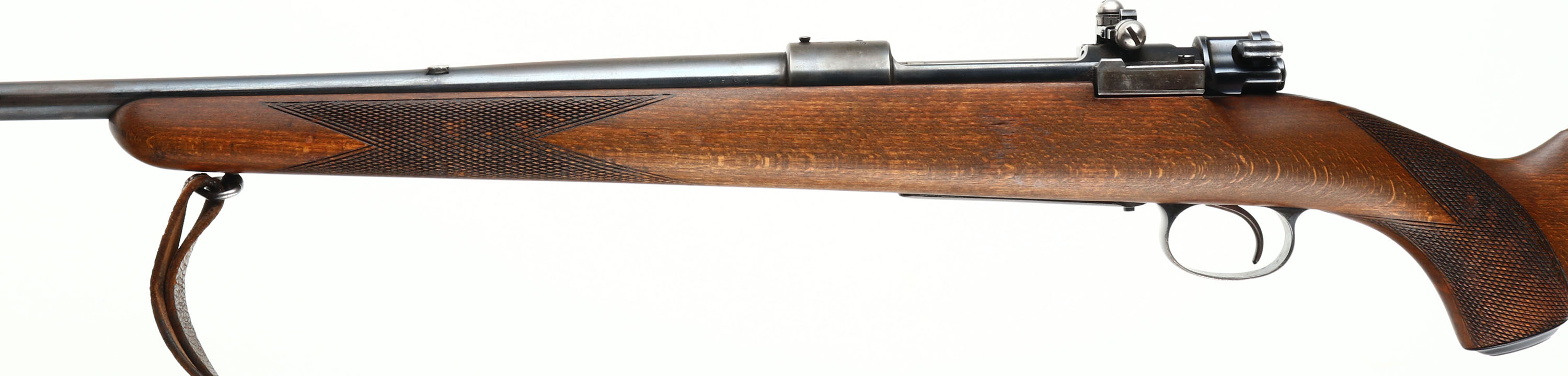 Husqvarna, Repeating Rifle 640, CAL: 30-06, MFG: 1951, SN: 116576, Bolt Action Rifle, 23 5/8'' barrel. The checkered & capped flat pistol grip wood stock is very good & solid. There is a 2'' crack off the back of the receiver & a small 1'' grain crack coming off the back of the trigger guard, otherwise in great condition. The metal blue finishes are a combination of original blue & added blue finishes rating 85% overall. Bore is excellent. The receiver has a side mounted Redfield adjustable rear sight & its also tapped & drilled, with (4) screw filled holes. The barrel has a blank filled rear dovetail & a ramp elevated blade front sight. Stock carries a Pachmayr ventilated recoil pad. Comes with leather sling. A utilitarian hunting rifle built on one of the most durable actions ever made. FFL or C&R Req - Value: 300 to 500