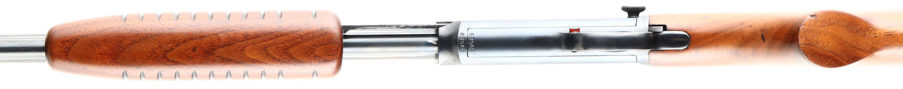 Winchester, Model 61, CAL: .22 L. RIFLE, MFG: 1938, SN: 37589, Pump Action Rifle, 24'' round barrel. Rare single caliber marked 61 with the early pre-war small forend & pre-war rust blue finish. The original flat pistol grip wood stock & grooved forend are excellent, having been cleaned, possibly lightly sanded & very nicely refinished. There are very few minor contusions, scrapes & scratches. The original metal finish rates 70% on barrel toning a bit gray & toned to a thin brown patina in areas of loss. The finish on receiver & mag rates 80%, with some speckled haze developing on the receiver. Bore is excellent. The barrel holds an adjustable rear sight & small blade front sight. Buttstock carries the earlier checkered metal buttplate. FFL or C&R Req. - Value: 1000 to 2000