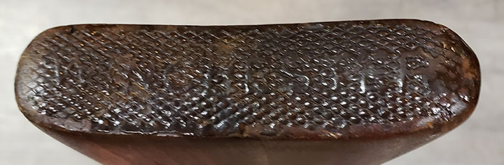 VERY RARE Winchester, Model 1900, .22 Short & Long Cal., MFG. 1900-02, SN: None, Bolt Action Rifle, 18'' round barrel, RARE CHECKERED & ''WINCHESTER'' STAMPED BUTT, which shows some smoothing, but still very legible. The original straight grip wood stock is very good & solid, with minor scrapes, contusions & handling marks to the original finish. There is also a 3'' grain crack at the forend tip on the right side. The original metal finish has fully toned to a smooth & even chocolate brown patina. Bore is fair, with visible rifling amongst cleaned pitting & roughness. Original sights. Again, this is the rare variation with the checkering & ''WINCHESTER'' stamping on the butt of the stock. A great little original & collectors' gun. Stamped butt adds 100% collectors' value. FFL or C&R Req. - Value: 800 to 1500
