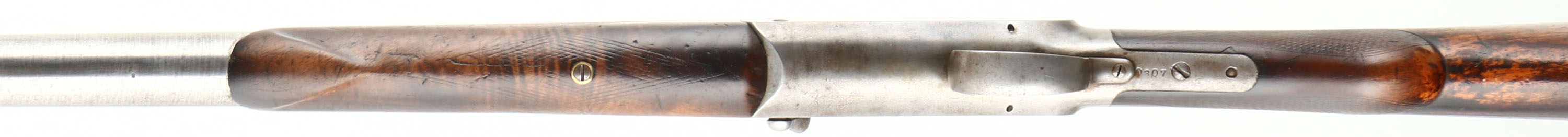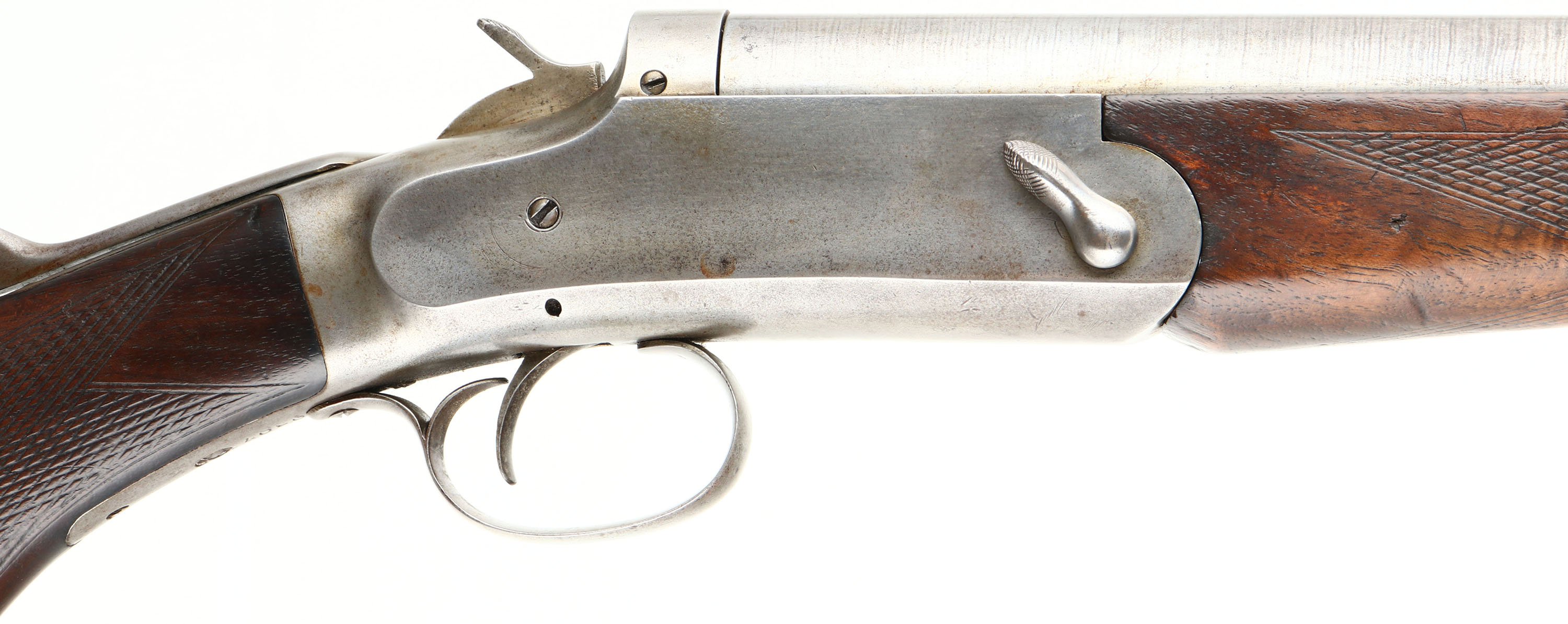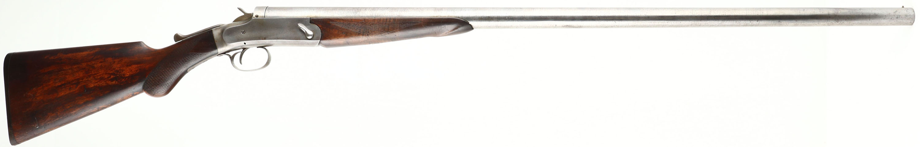 W.H. Davenport Fire Arms Co., CAL: 8 Ga, MFG: 1897-1910, S/N: 0307, Break Single, 35 3/4'' twisted steel barrel. The checkered round knob semi-pistol grip wood stock is very good with small nicks, dings, scratches, & wear from use/age, lightly worn checkering at wrist & worn checking at forend. The metal on the barrel appears to have been polished & is a gun metal, twisted steel pattern still present on about half of the barrel. The metal on the receiver is a gun metal gray with small spots of brown/gray patina. Top of barrel is marked ''THE W.H.DAVENPORT FIRE ARMS CO. NORWICH CONN.U.S.A.'', ''PATENTED AUG.11.1896''. Bore is very good with light roughness. Barrel holds a bead front sight. Stock carries a checkered hard rubber buttplate. Lockup has a small amount of play. LOP: 14 1/8'', DAH: 2 1/2'', DAC: 2''. Twisted steel barrels are not safe to shoot smokeless loads or steel shot out of. FFL OR C&R Req. - Value: 1500 to 3000