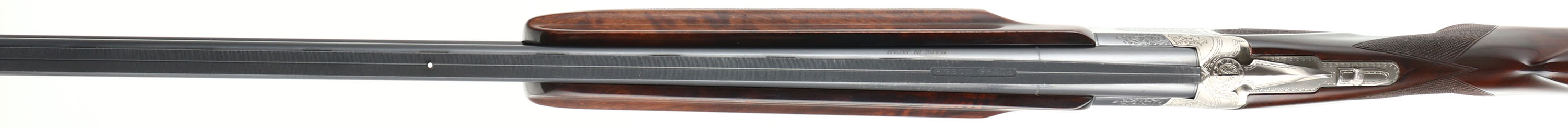 FANTASTIC, Winchester, Model 101, PIGEON GRADE, 20 ga, MFG. 1963-87, SN: PK25707, Over & Under Shotgun, 32'' Matted Ventilated barrels, with two white beads, F/M. The model 101 started production in 1963 with the 12 ga. The 20 ga enter production in 1966 & the 28 ga & .410 bore were first introduced in 1968. Serialization records do not exist beyond 1971 when SN's for the 20 ga., 28 ga. & .410 bore was at 228,500. Production continued between 1971 & 87. It is likely this example's SN places it in the mid 70's. The original checkered & flat knob wood stocks are excellent, with very few tiny handling marks to the high gloss original finish. The original metal blue finish is 98% on barrels, with excellent silver tone finish on the scroll engraved receiver. Belly of receiver carries an engraved pigeon. The matted rib is stamped ''PIGEON GRADE'' & carries white mid & front beads. Bores are excellent. Original Winchester ventilated buttpad. LOP 14 5/8'' over pad. DAC 1 1/4'' & DAH 1 3/4''. Comes in a gray/blue hard case, with warranty card, booklet & sticker. An excellent, original condition & highly collectible Pigeon grade 101. FFL Req. - Value: 2000 to 4000