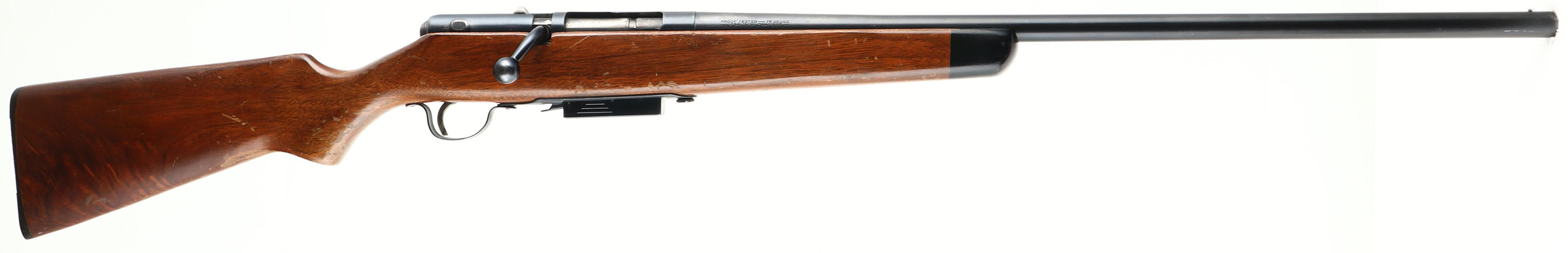 Savage, Stevens Model 58, CAL: 16GA, MFG: 1953, SN: NSN, Bolt Action Shotgun, 26'' barrel. The original flat pistol grip wood stock is very good & solid. The original finish is intermittently chipping & flaking, alongside scratches & scrapes. The metal blue finish rates 95% overall. Bore is excellent. The barrel holds a single front bead. Stock carries a grooved plastic buttplate. FFL or C&R Req. - Value: 150 to 300