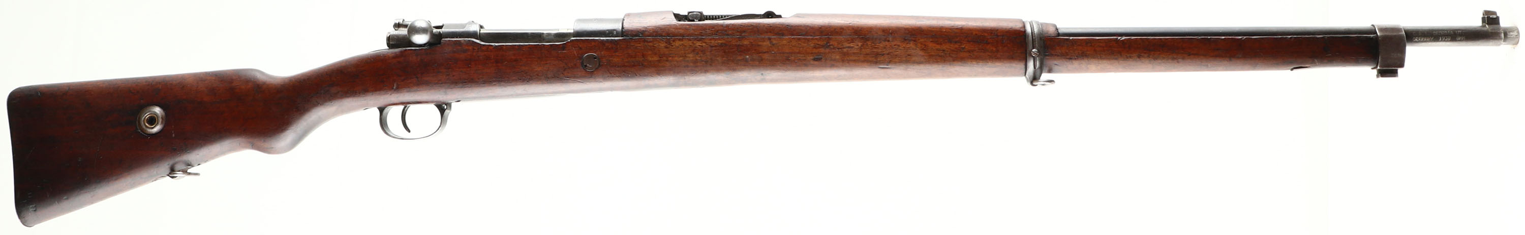 Asfa Ankara German Rebuild. Model: M38. Cal: 7.92x57mm. MFG: 1947. S/N: 1F26941. Bolt Action Rifle. 282/4'' Barrel. The semi pistol grip stock is very good with scratches, gouges, oil darkening & wear from use/age, hole in bottom of stock between barrel bands, hairline crack on bottom of stock that runs from rear barrel band to front barrel band retention spring, bolt disassembly disc in stock, rear barrel band's retention screw has been damaged and would need drilled out to remove it so you can take the stock off. The metal finish rates 70% overall with spots of thinned bluing. Left side of receiver is marked with S/N, top of receiver is marked ''T C'', ''AS FA'', ''ANK ARA'', ''1947'', Crescent Moon/ Stars, left side of receiver rail has a very faint ''GEW 98'' marking, right side of receiver band is marked with faint German proof marks, end of barrel is stamped with importer marks, S/N mismatched bolt, bolt & inside of action still have large amounts of original grease from when it was stored at the arsenal. Bore is very good, slightly dark with strong rifling. Barleycorn front sight, V-notch Tangent rear sight marked 1 to 20. Metal Butt plate with wear & brown patina. Bottom sling swivels, Missing cleaning rod. This rifle appears to originally been a German made Gew 98 pattern rifle that was re-arsenaled in 1947 by the Turks into their standard M38 patter, this was very common for the time since Turkey had many different Mauser rifle and converted them all into one standard pattern for easy of use & logistics. FFL or C&R Req. - Value: 200 to 400
