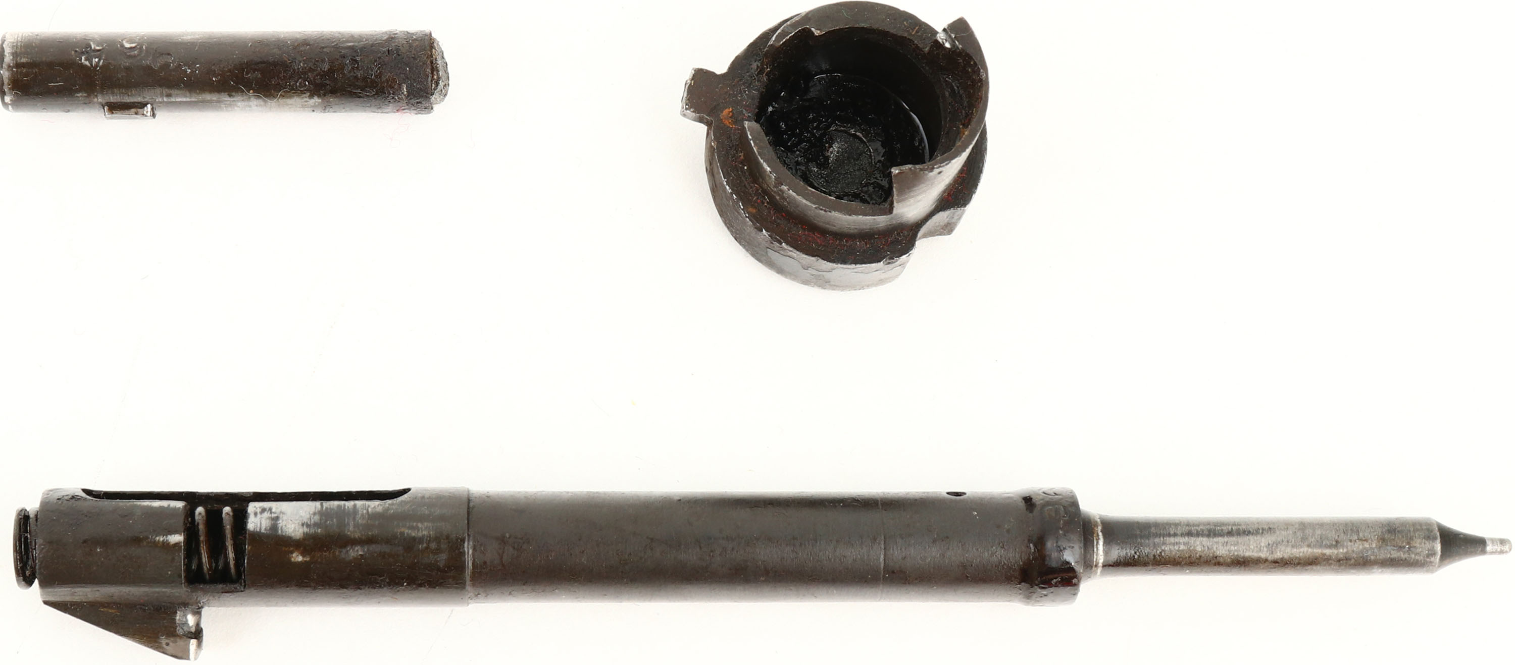 RARE!!! & EARLY!!!, Yokosuka Naval Arsenal, Type 99 Navy Special. Cal: 7.7x58mm Arisaka, MFG: 1944, S/N: 158, Bolt action Rifle, 26 1/2'' barrel. These rifles were made by the Japanese navy because at this time all the rifle arsenals were tied up with making rifles for the army, & with shortages going around of materials & factorys, there was no extra capacity to make rifles for the navy, so they took their own factory's at the ship yard & came up with a type 99 that was almost entirely made of cast iron, other than the barrel & bolt body, while normally a cast iron receiver would not last more than a handful of rounds before exploding, they achieved a ''functioning'' rifle by having a barrel extension so that the locking recesses for the locking logs are part of the barrel, not the receiver, so the receiver only acts to hold everything in place & not a pressure bearing component. Production numbers vary wildly on these, collectors have said up to 17,000 to as little as 6,000, but either way they are a rare & very collectable weapon today in any condition. Even with these rifles being made with the intention of using full power military rounds unlike the trainers, collectors do not recommend shooting them from their scarcity and with the fragile receivers. The semi-pistol grip wood stock is good, stock has been sanded down, heavily in areas & re-finished, metal is proud to wood in areas,. The metal black paint finish which is factory they were painted not blued, rates 80% on the barrel with a few spots of wear & 60% on the receiver with spots of wear & thinning. Left side of receiver is marked with the part # ''964'', the Yokosuka Naval Arsenal stamp, & S/N, top of receiver has the navy Anchor mark, & faint remnants of ''9 9 Shiki Toku'' marking or ''Special Type 99'' in English, top of barrel is marked with the Yokosuka Naval Arsenal stamp, ''964'', ''A - 93'', bolt, barrel bands, trigger guard, & butt plate are all marked with the ''964'' part #, the Safety knob on the bolt has a piece broken off but all other parts of the bolt are precent & in working order, missing one screw for front barrel band, floor plate/trigger guard screws appear to be modern replacement but with the hobbled together nature of these rifle it could be original, paint appears to match. Bore is very good, bright with light roughness. Barleycorn front sight with protective wings, Tangent Aperture rear sight marked 3 to 15. Cast iron Butt plate with black paint finish.no cleaning rod or sling mounts were made for these rifles. A excellent & rare find that's sadly been sanded down and possible has replaced parts but its still a good collectors piece. FFL or C&R Req. - Value: 600 to 2000