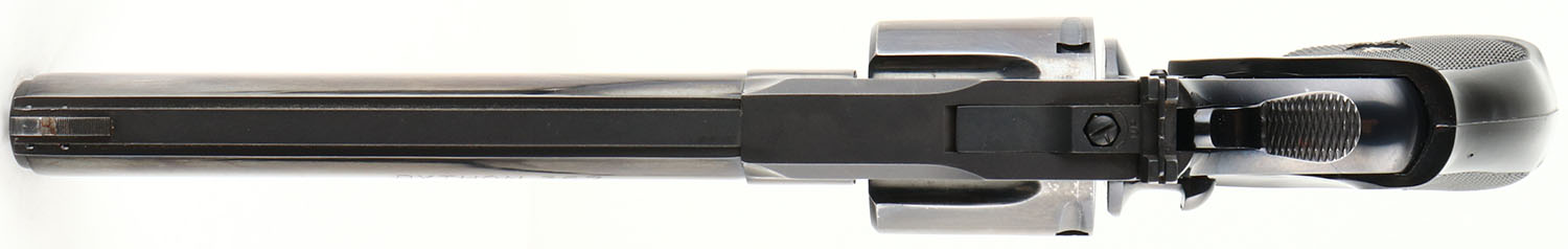 Colt, Python, CAL: 357 MAG, MFG: 1971, SN: E30211, Double Action Revolver, 6'' barrel. The Colt Python was introduced as a premium model in 1955, in caliber .357 Magnum. The Python is built on the large I-frame & has a reputation for accuracy, smooth trigger pull, & a tight cylinder lock-up. It has a 6-shot swing-out cylinder & was available in Python blue, Royal blue, Python nickel & Python stainless steel finishes. Some firearm collectors & writers have described the Python as ''the finest production revolver ever made''. It has a wide serrated target hammer, ventilated rib, & fully adjustable target quality rear sights. The left side of barrel is stamped in two lines ''PYTHON 357 * .357 MAGNUM CTG * ''. The upgraded gold logo medallion Pachmayr ''GRIPPER'' rubber grips are excellent. The high polish blued finish rates 90%, with holster wear at & around the muzzle, the cylinder & sides of the frame. Bore is excellent. The frame holds a screw height adjusting ''U'' notch rear sight & the ventilated rib holds a serrated front blade sight (missing orange insert). This pistol would be a great addition to a shooters collection. FFL Req. - Value: 1400 to 2000