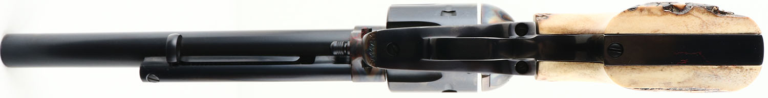 BOXED Colt, Single Action Army (P1870), CAL: .45 COLT, MFG: 1978-93, SN: SA11751. Single Action Revolver, 7 1/2'' barrel. The top of the barrel is marked ''COLT'S PT F.A. MFG. CO. HARTFORD CT. U.S.A.'', The left side of the barrel is marked ''COLT SINGLE ACTION ARMY 45''. The left side of the frame is marked with the Rampant Colt logo above the trigger guard & next to patent dates. The full SN can be found on the frame. The fantastic original stag & gold Rampant Colt medallion grips are excellent. The factory metal blue finishes rates 99%. The case-hardened frame displays vivid case-colors. Bore is excellent & bright. The barrel holds a blade front sight. Comes in the original factory wood grain box, with unopened original documents. Box has tape repairs on the ends. FFL Req. - Value: 1500 to 2500